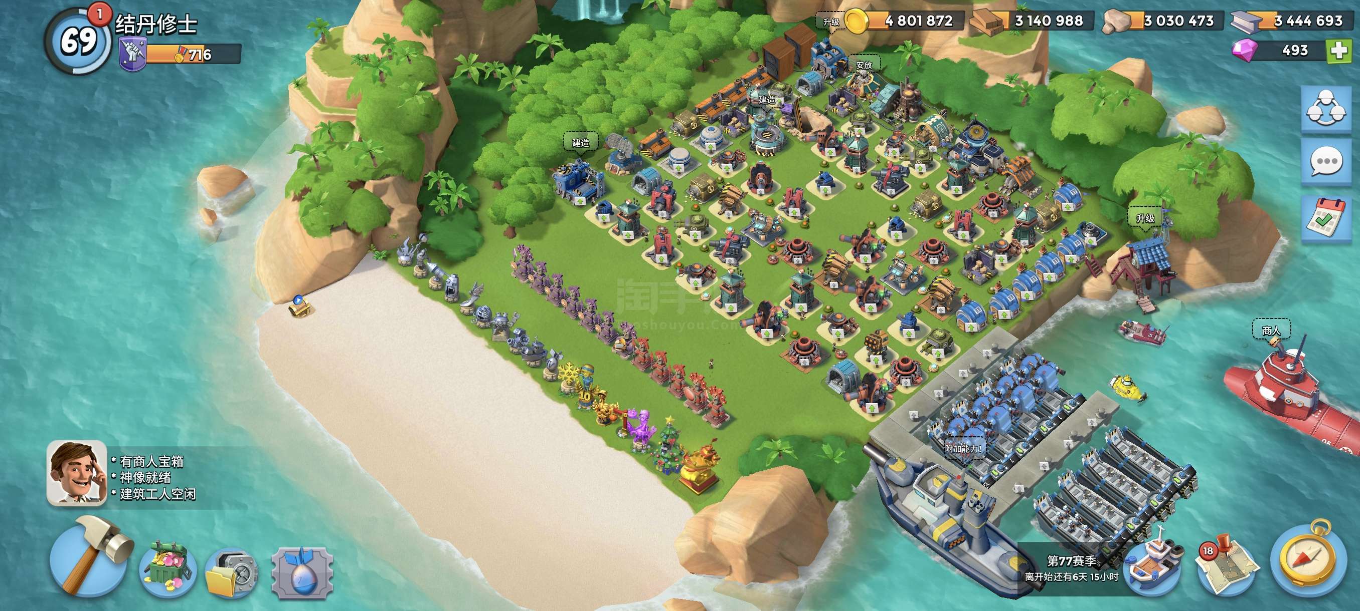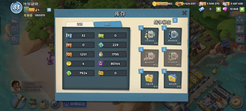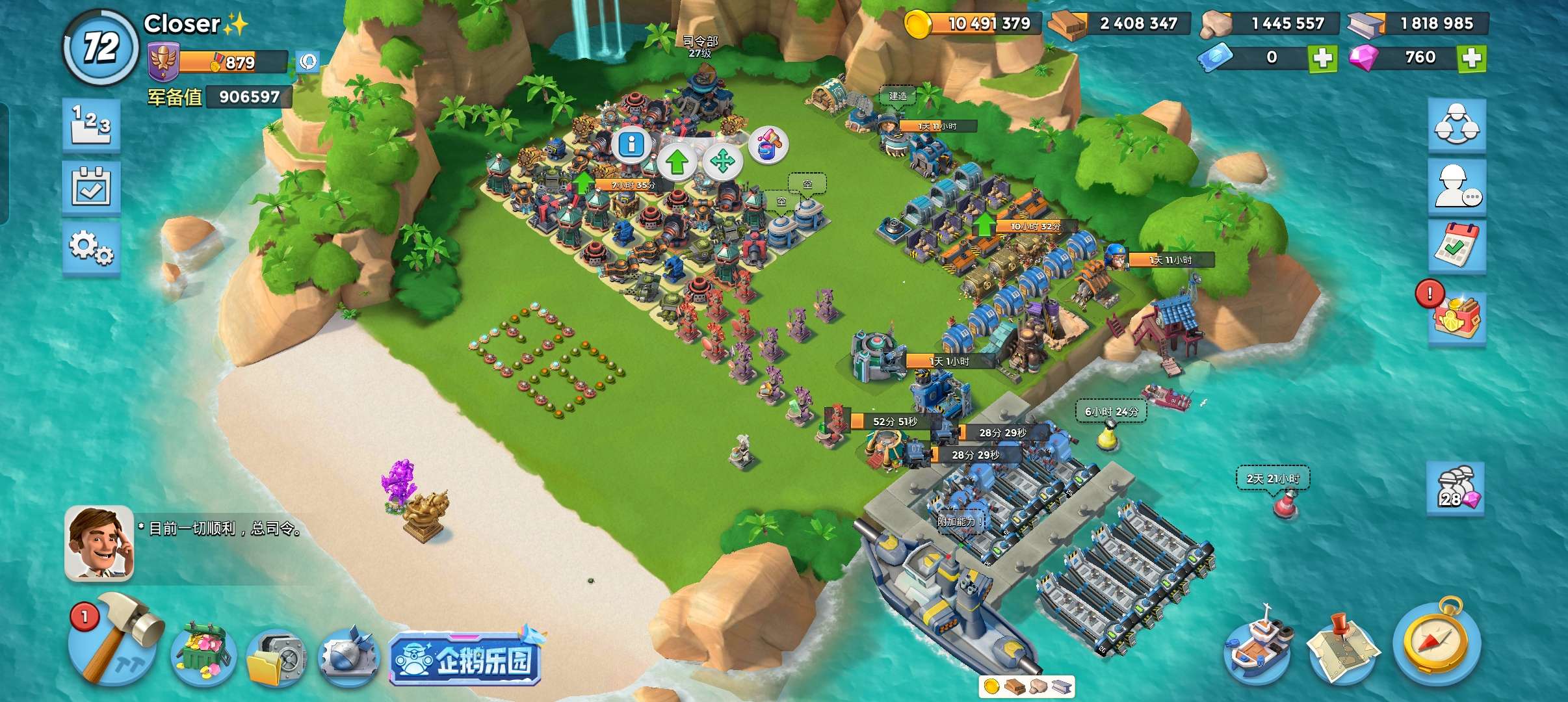 海岛奇兵国服q区,72级27本,42能35血32原型攻击30攻50掠夺,千药冲榜号
