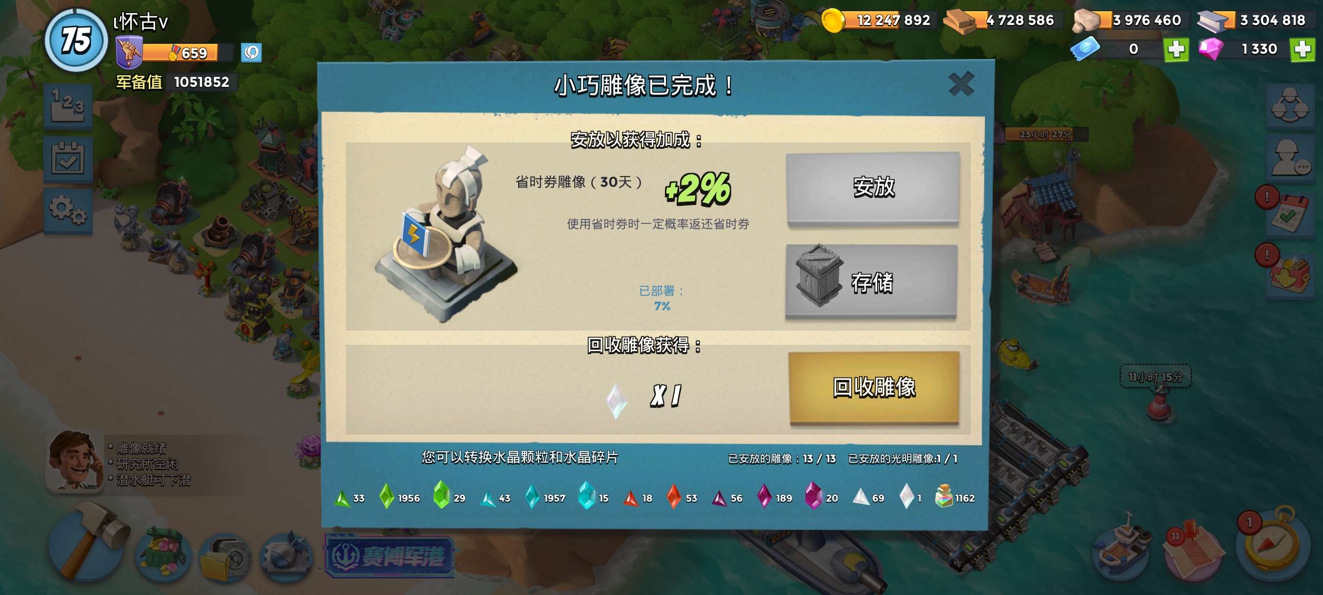 满级沙鱼旁蟹号,1.3W+钻,合药6K+,满雕刻,三次战令