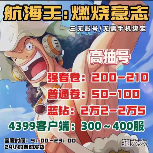 航海王:燃烧意志【安卓其他】【1区】🍎82级游戏账号🍎60W彩钻+🍖4300张UR招募