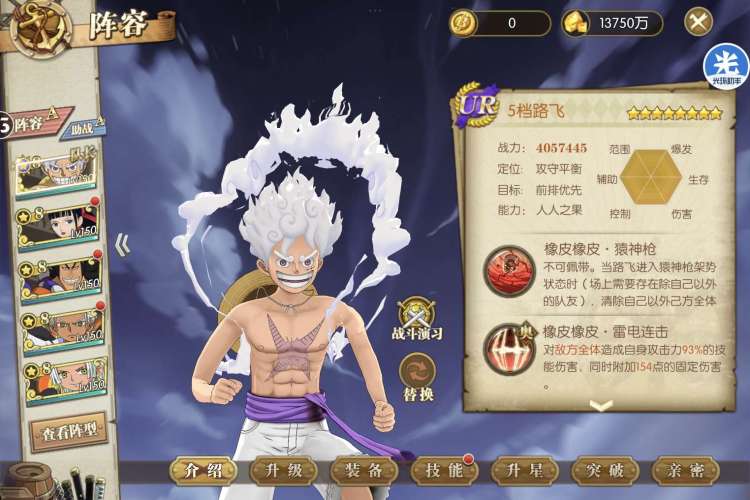 航海王:燃烧意志【安卓360】现役国家队八星五档路飞