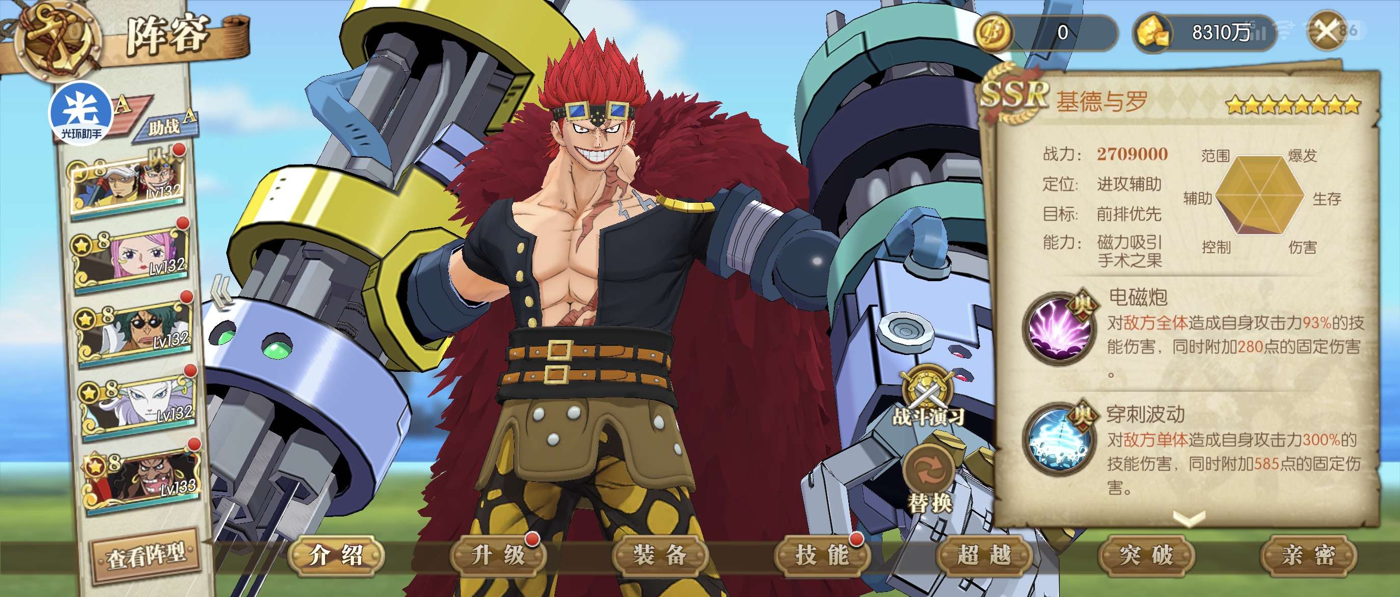 7星UR尼卡路飞炽天使阵容背包还有UR卷子等UR尼卡路飞返厂可以八星 新区左无585,vip8有小助