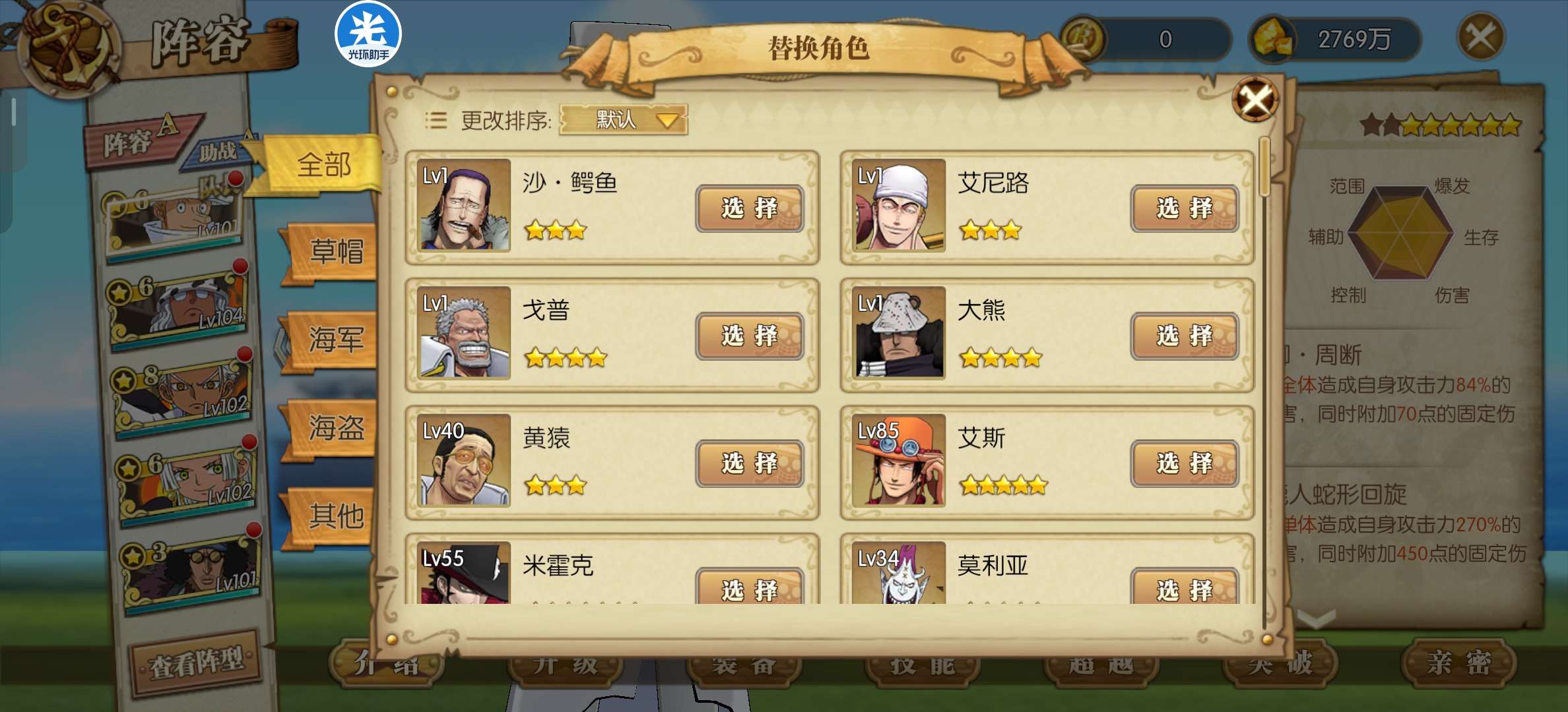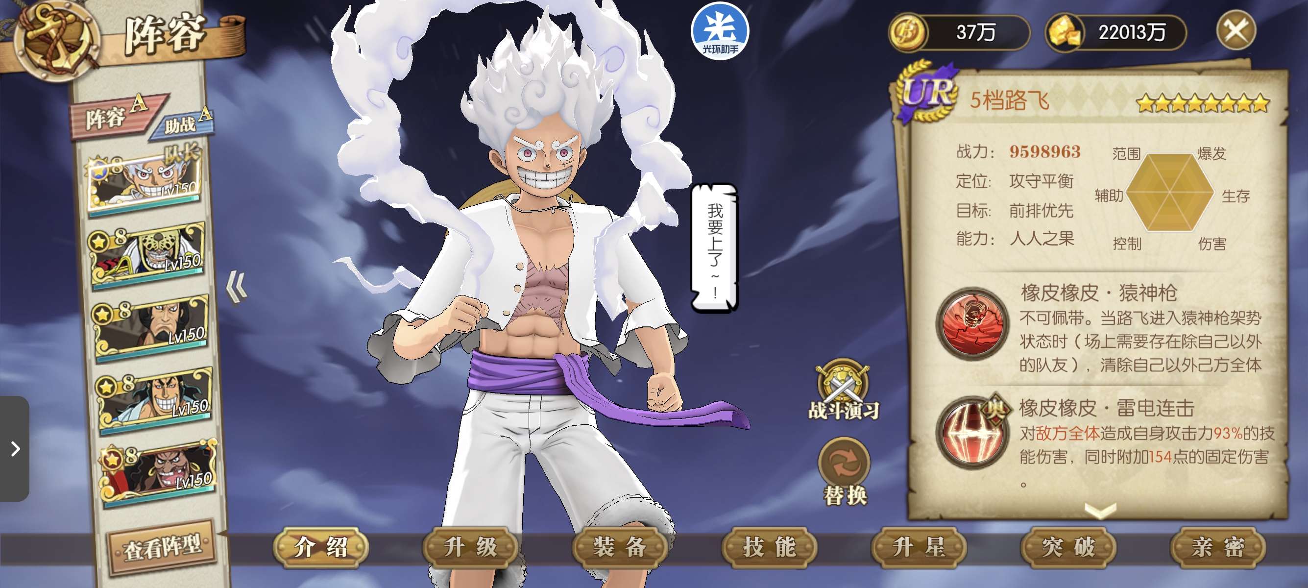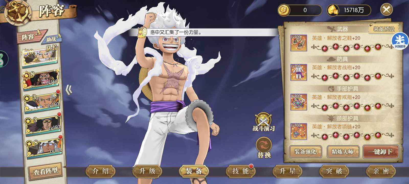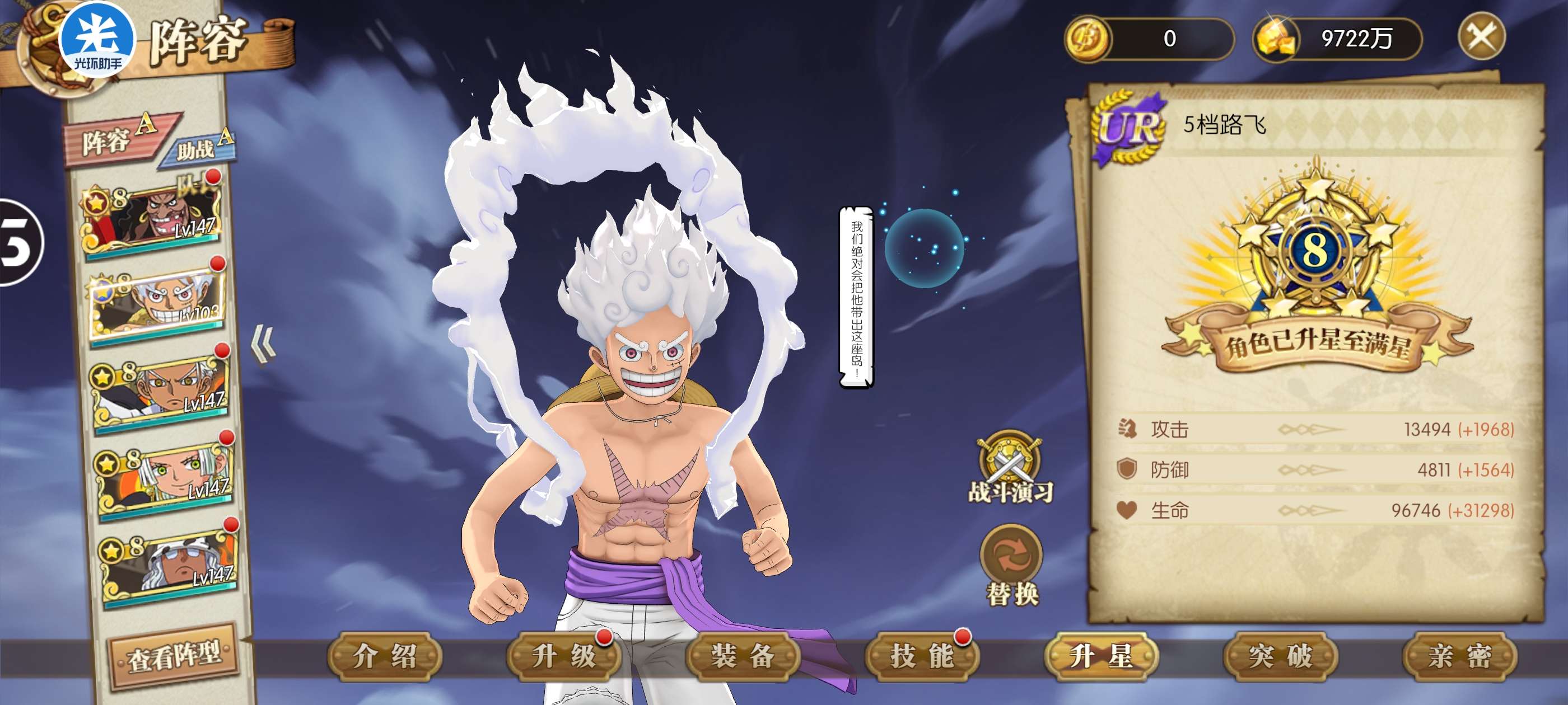 八星UR尼卡路飞一套解放套八星sp黑胡子七星龙凯炽天使阵容背包还有1100强者卷氪金300有月卡