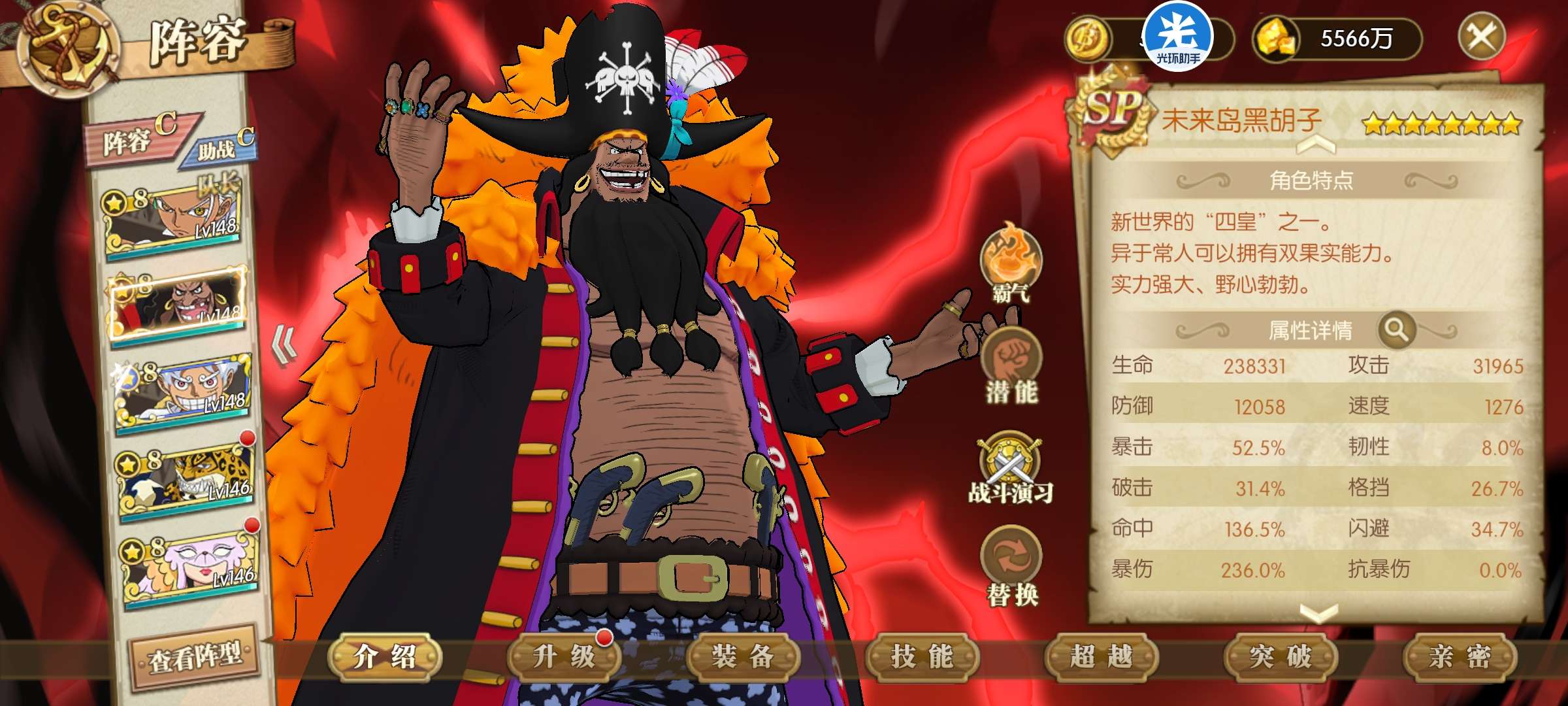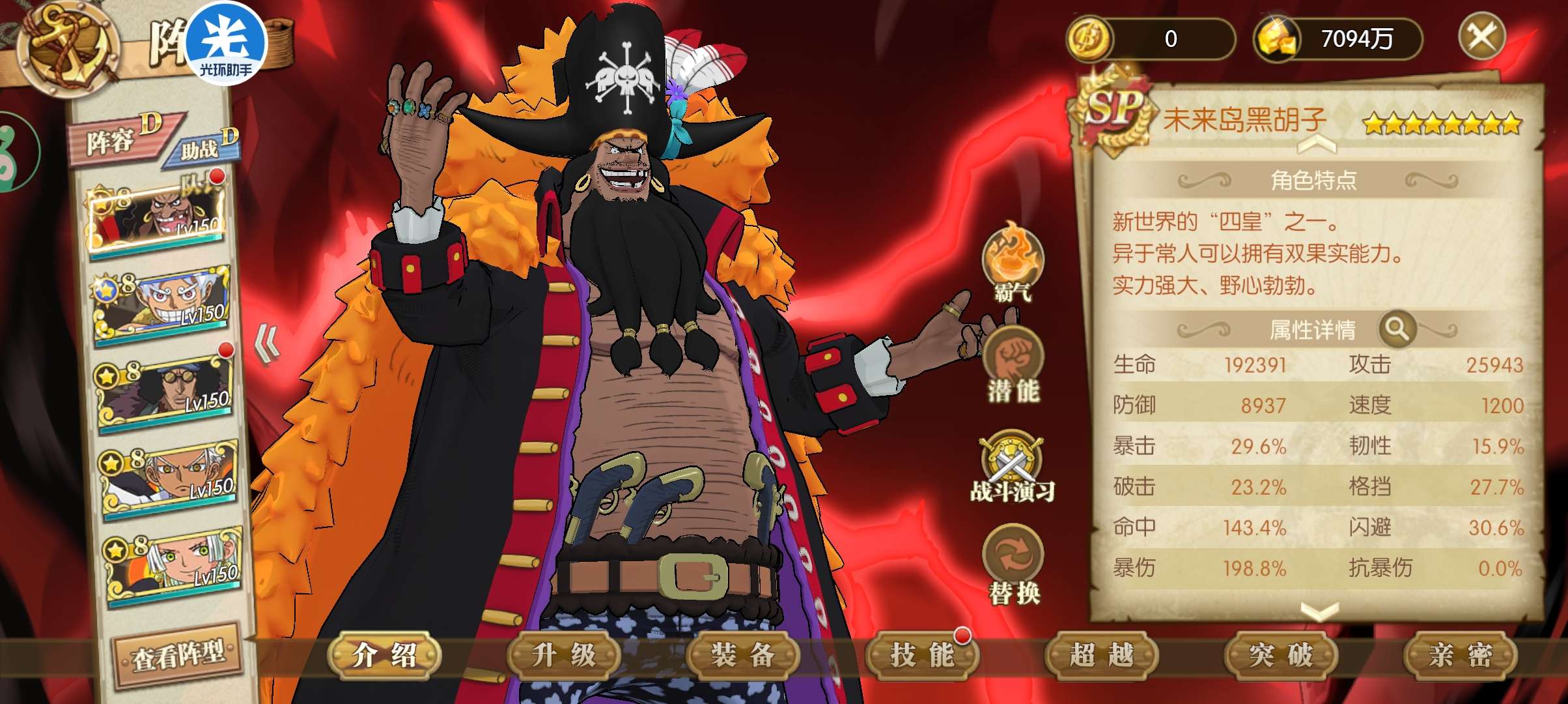 八星sp黑胡子八星尼卡cpo阵容开局剧情传记没打大量资源可以拿账号有五级阵背包1000强者70UR