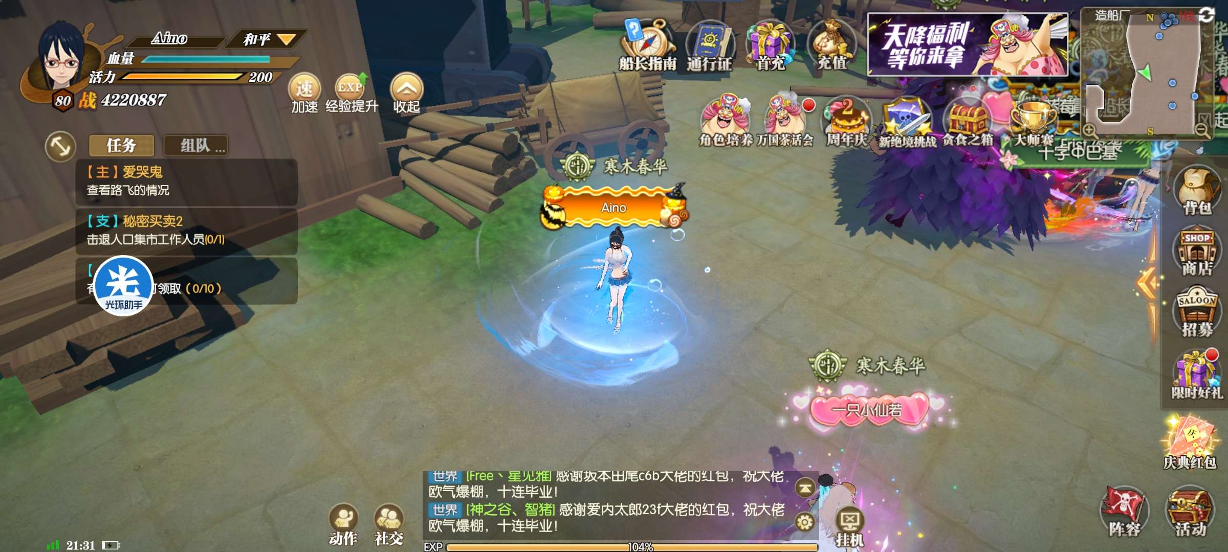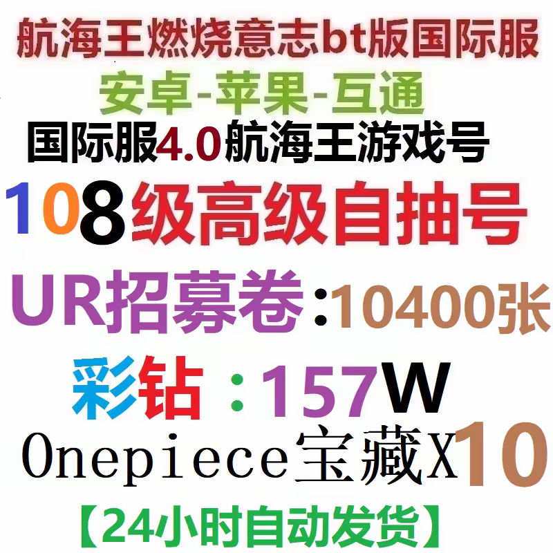 【1区】108级游戏账号🍎157W彩钻+🍋10400张UR招募+Onepiece宝藏X10