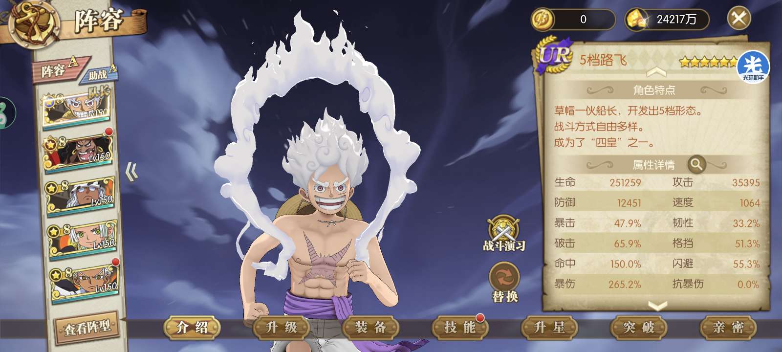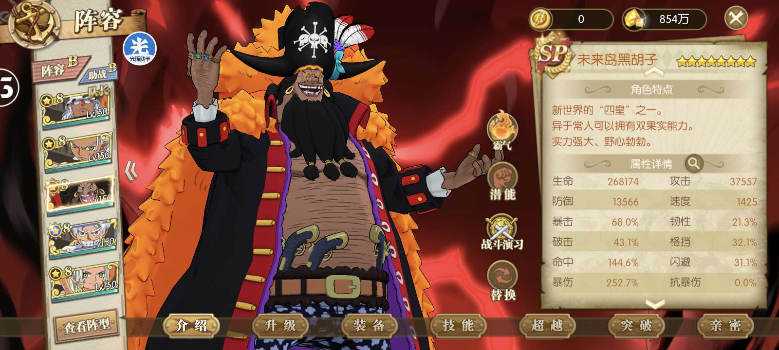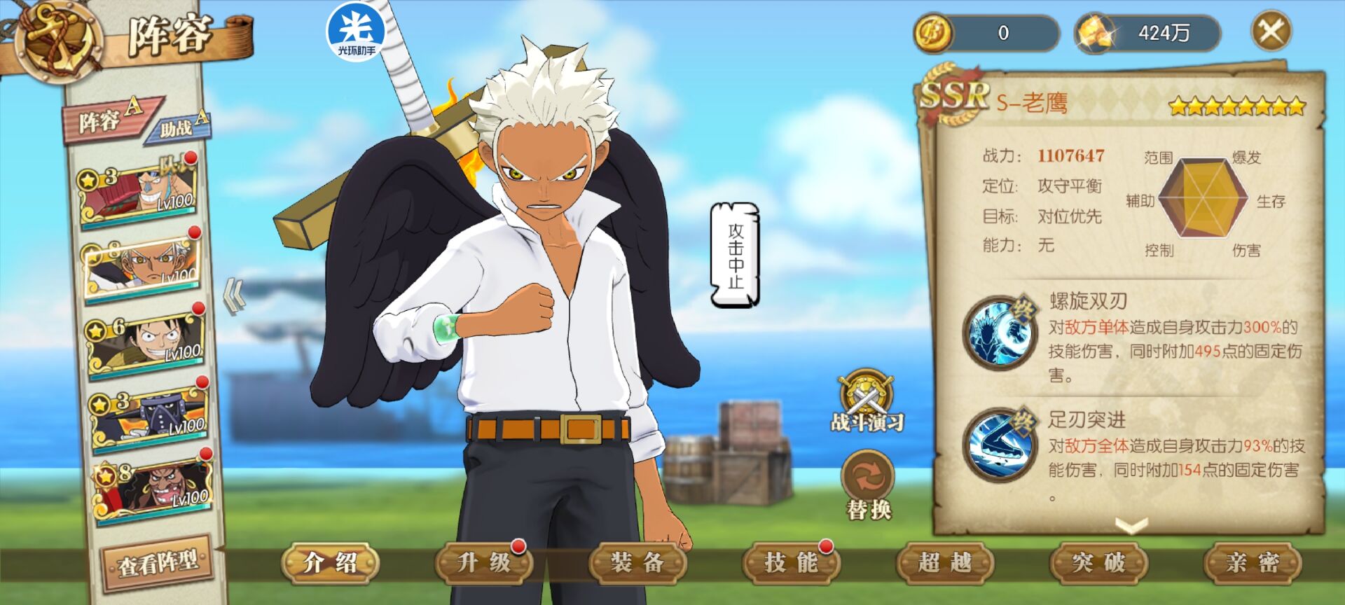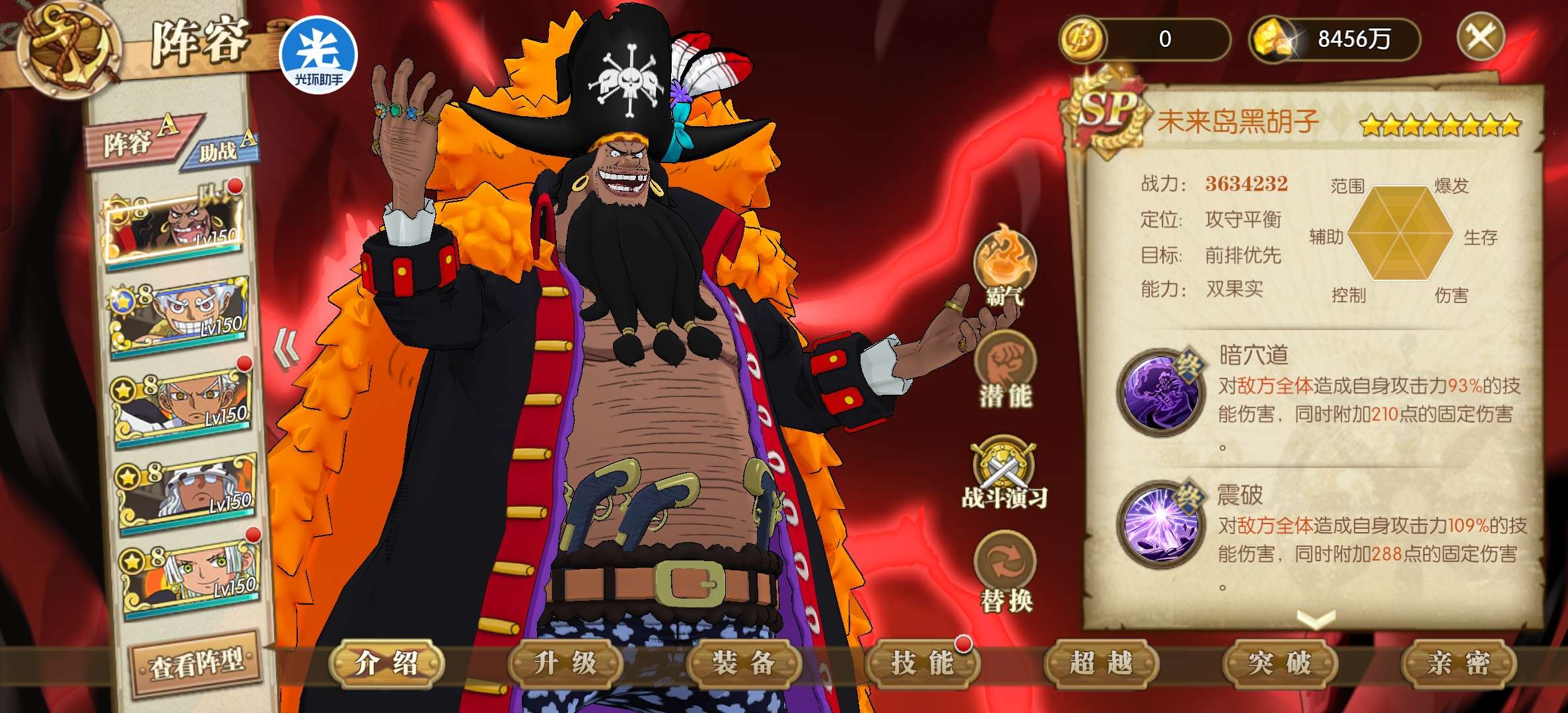 双六级阵 时装币3800 UR凯多全助战皮肤 小鹰眼1476 黑胡子1500 路飞1474天梯前20