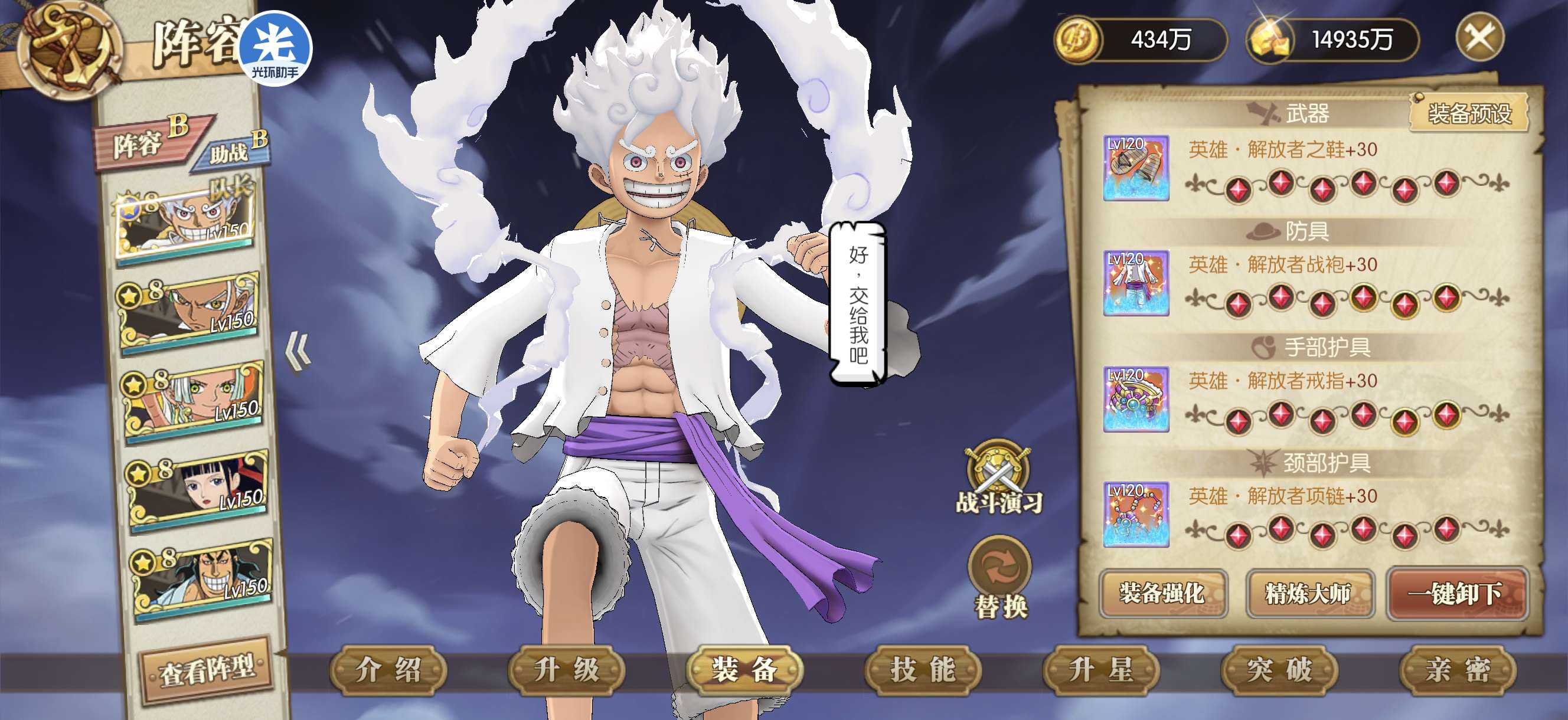 光环 自玩草帽团8星路飞 4罗宾 航线 和剧情都没动很多资源 还在