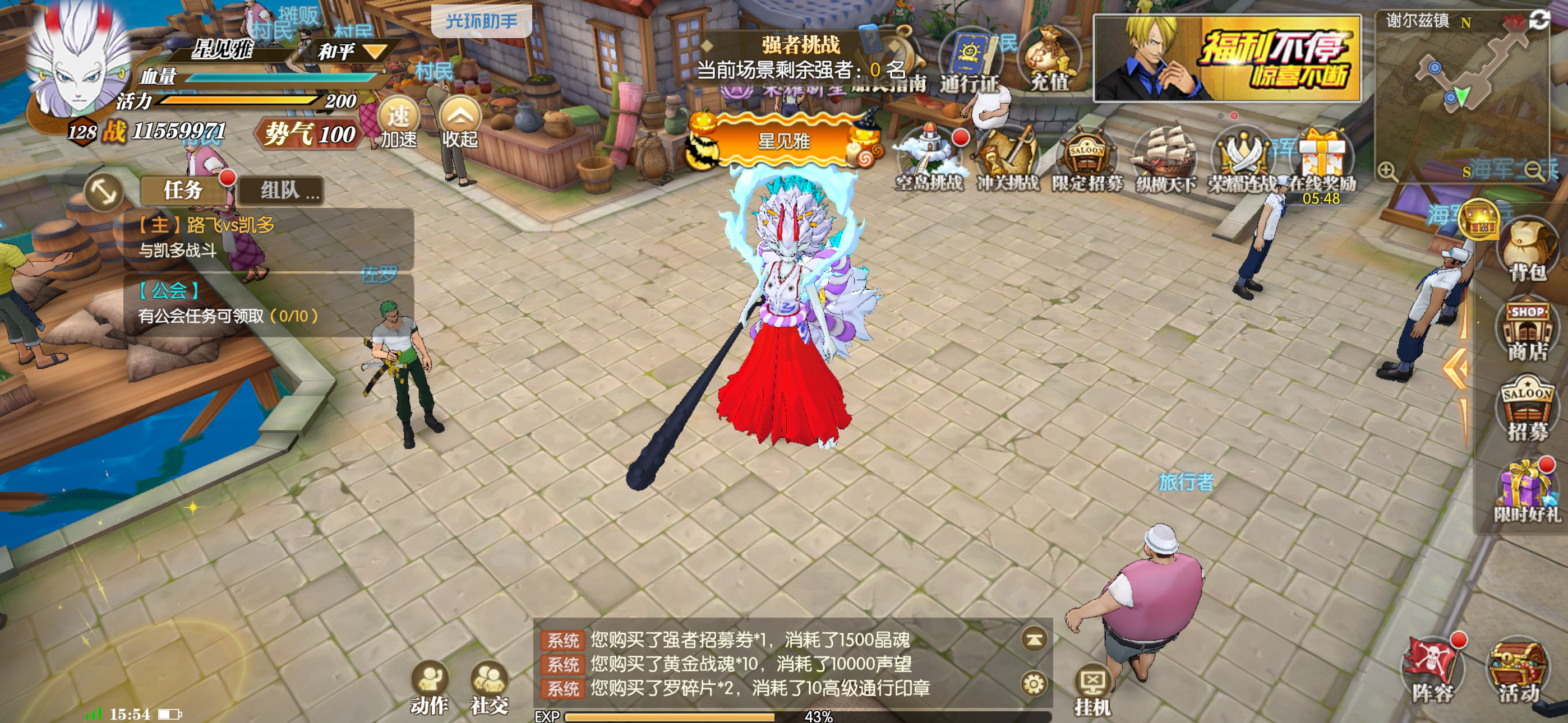 特价♥【1区】100级游戏账号♥110W彩钻+8000张UR招募+Onepiece宝藏X4