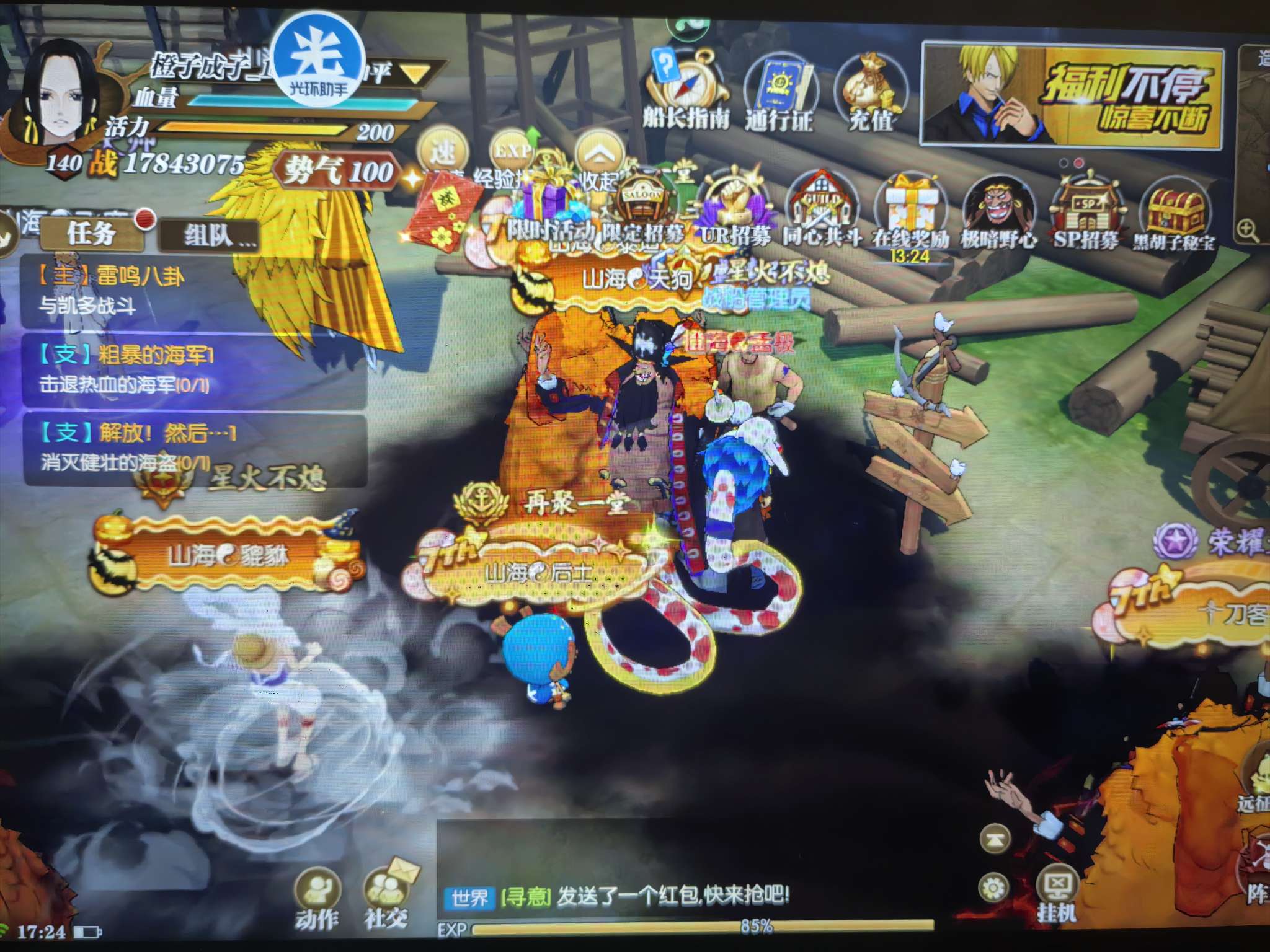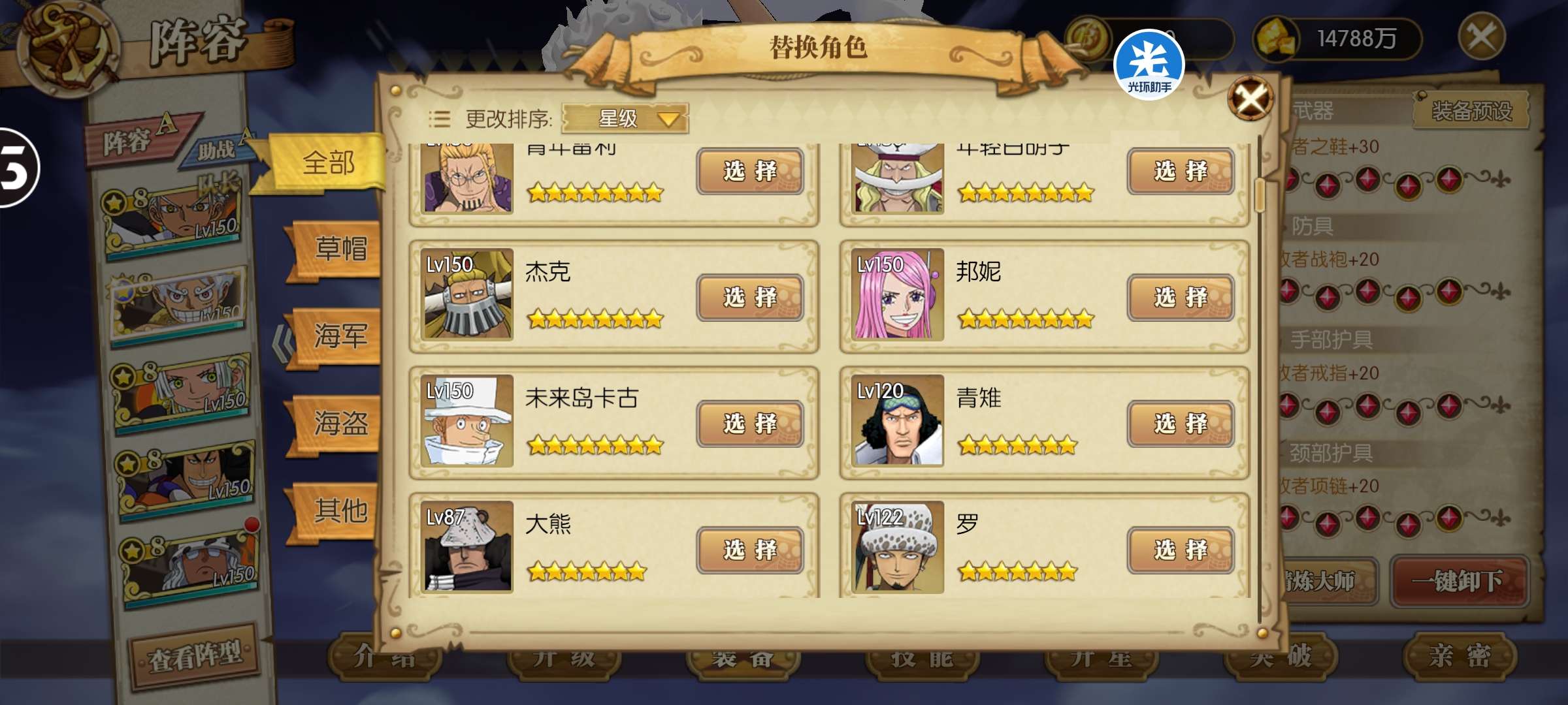 先锋4,风云船长,小熊已出,免排,4个up,未来岛黑胡子已8星