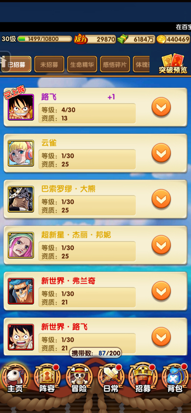 航海王强者之路【安卓91】单山智有替补,不玩了,随缘出