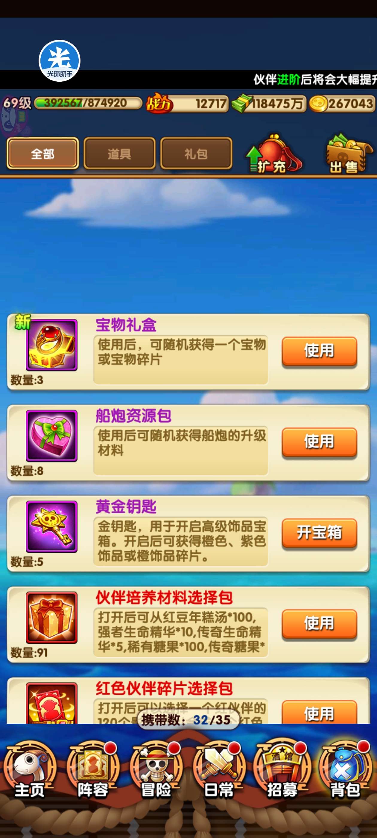 航海王强者之路【安卓果盘】75万金币10000精华1640金卡碎片片
