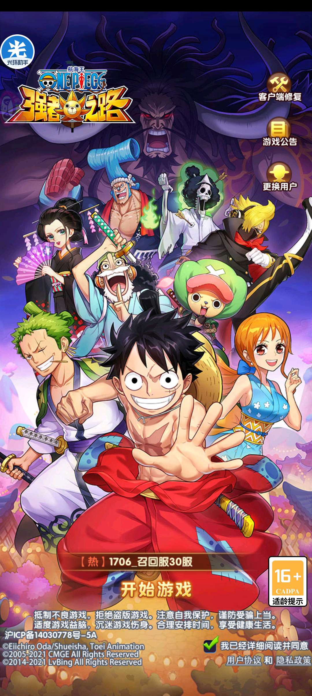 航海王强者之路【安卓官方】1706新区,V11进度号