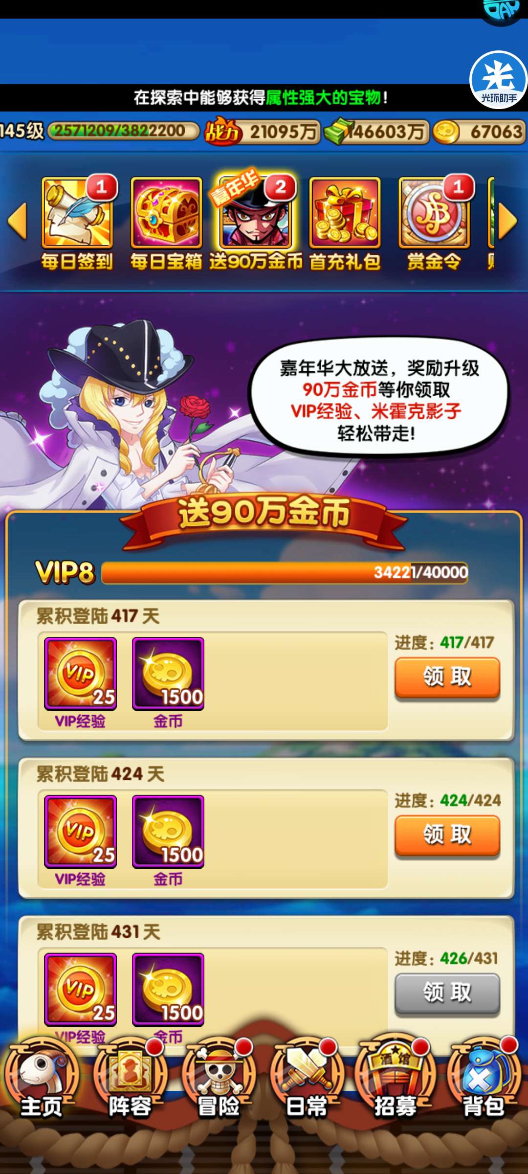 航海王强者之路【安卓果盘】67W金币+红色自选1-2个+VIP4+等级78左右,超多资源看图