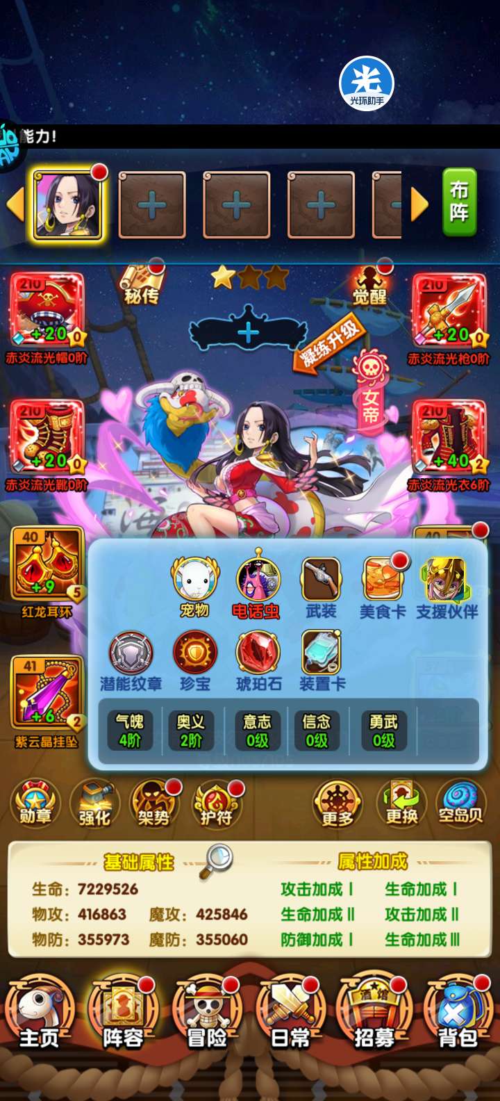 航海王强者之路【安卓果盘】105级v5,62w金币,加11女帝,红卡碎片4000+超多礼包资源