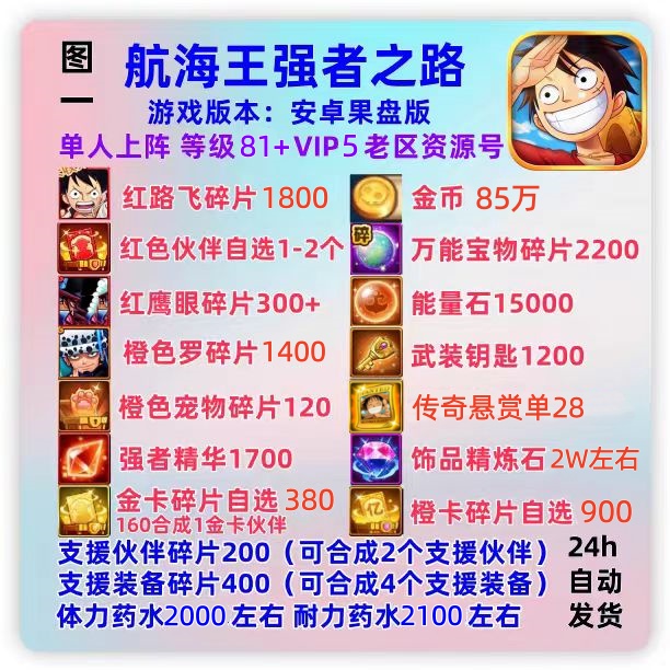 金币6-8万+红1-2个+橙2-5个+2个红橙自选包+等级55左右,1514区之后的区,超多资源