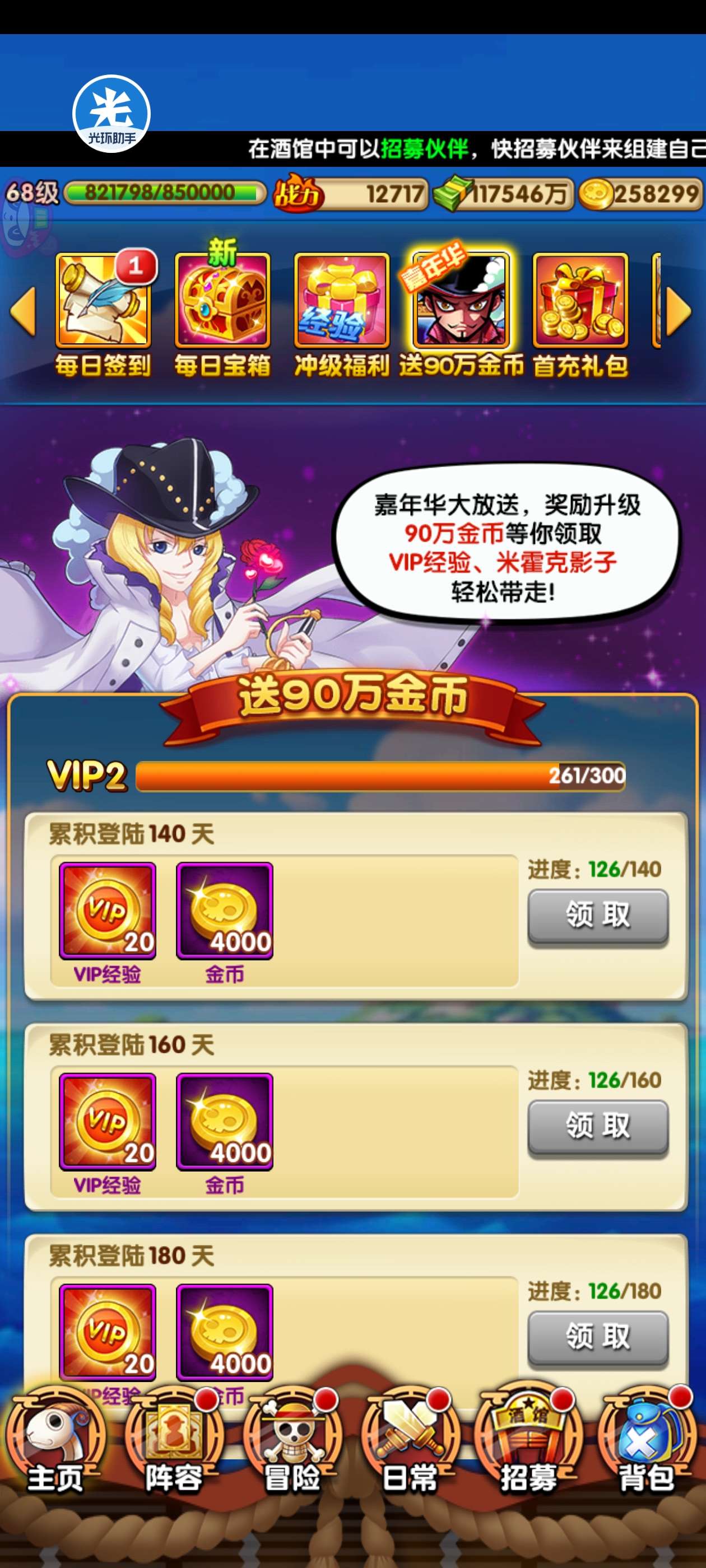 航海王强者之路【安卓果盘】vip3金币20万大量资源