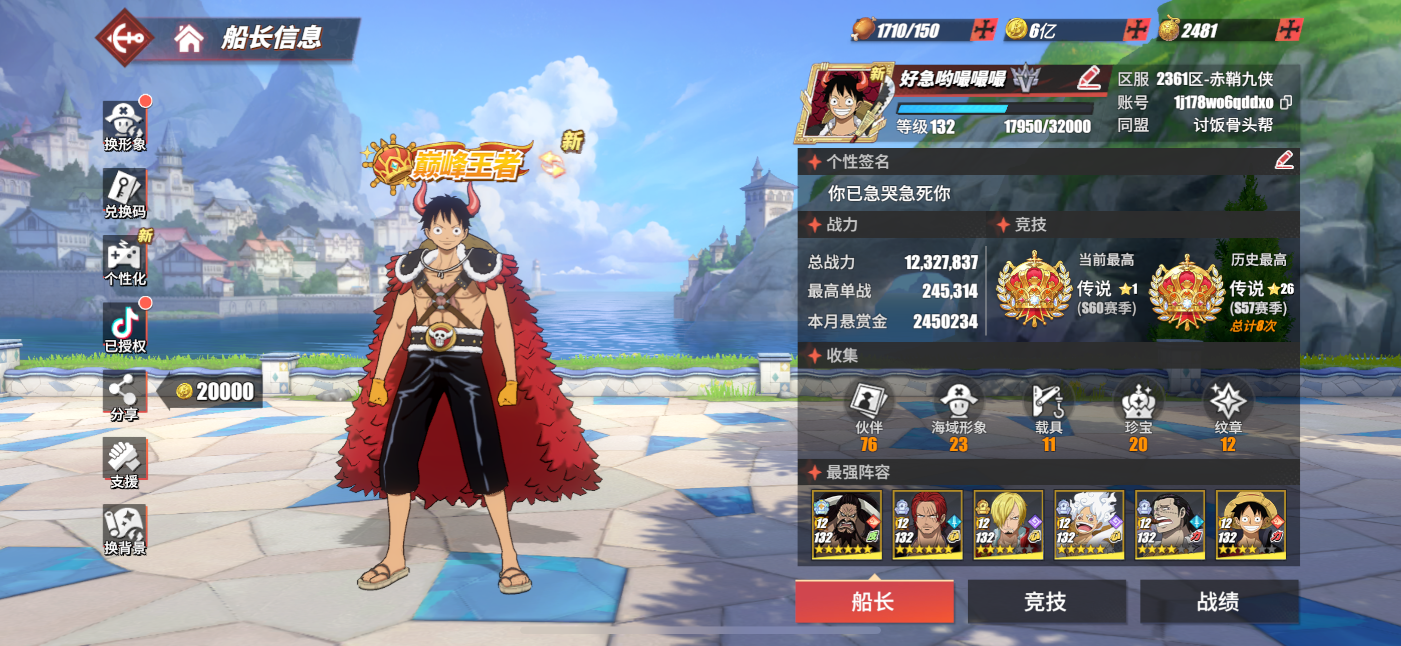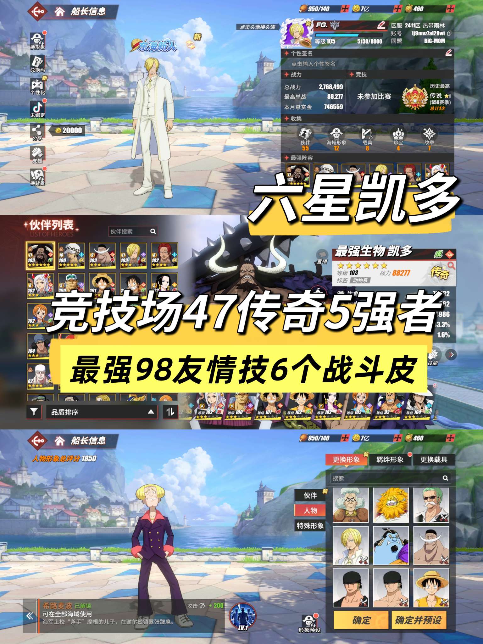 竞技场47传奇5强者,最强98友情技文山战斗皮等多个皮肤,六星凯多换绑冷却中5.15换