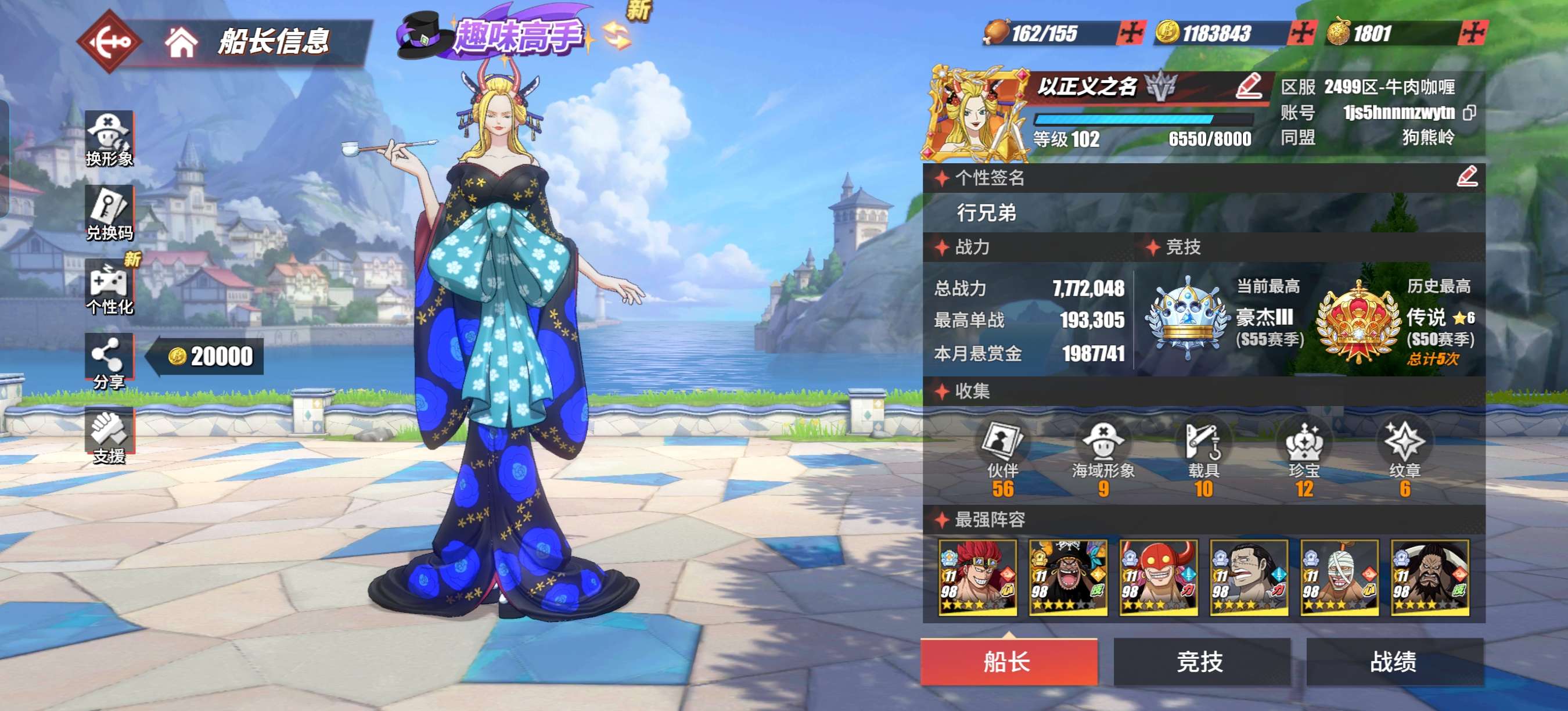 可刀770万战力觉醒路奇十字工会老沙最新角色都有还剩两千金果33张券月卡没到期