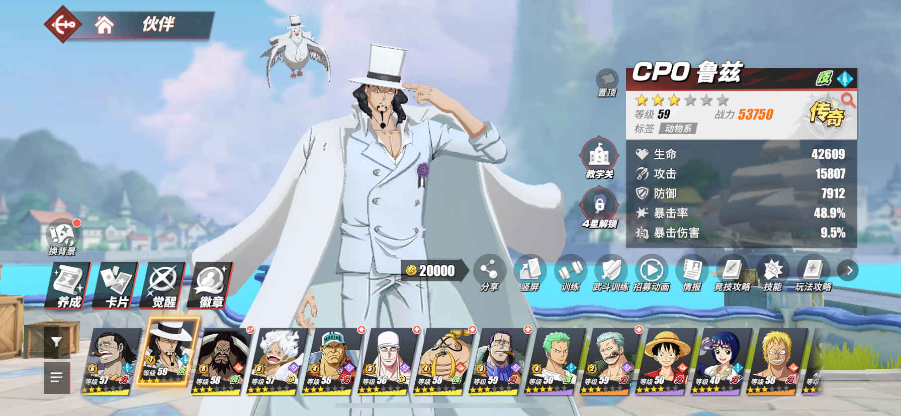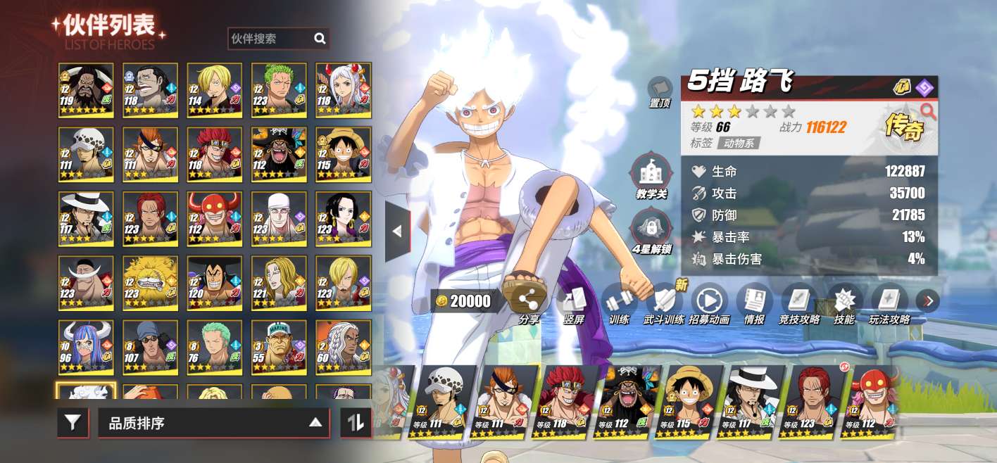 11个强者1.5万金果三个98友情70个传说伙伴尼卡路飞已出,各种热门角色都有白衣豹子也有,老沙有