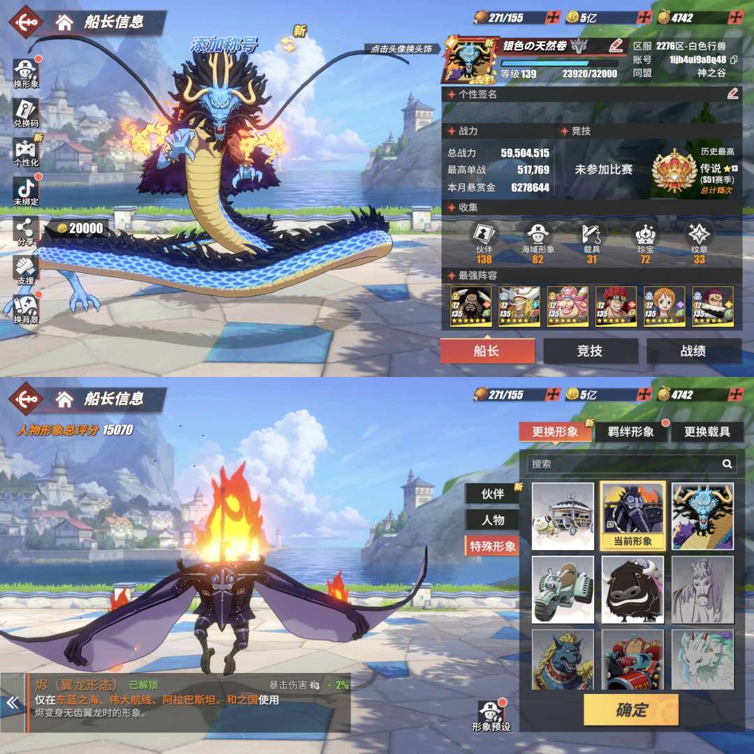 飞龙形象凯多。翼龙烬。4神船31艘船。5个98友情技。尼卡桃子76传奇11强者。珍宝:6凯多。强