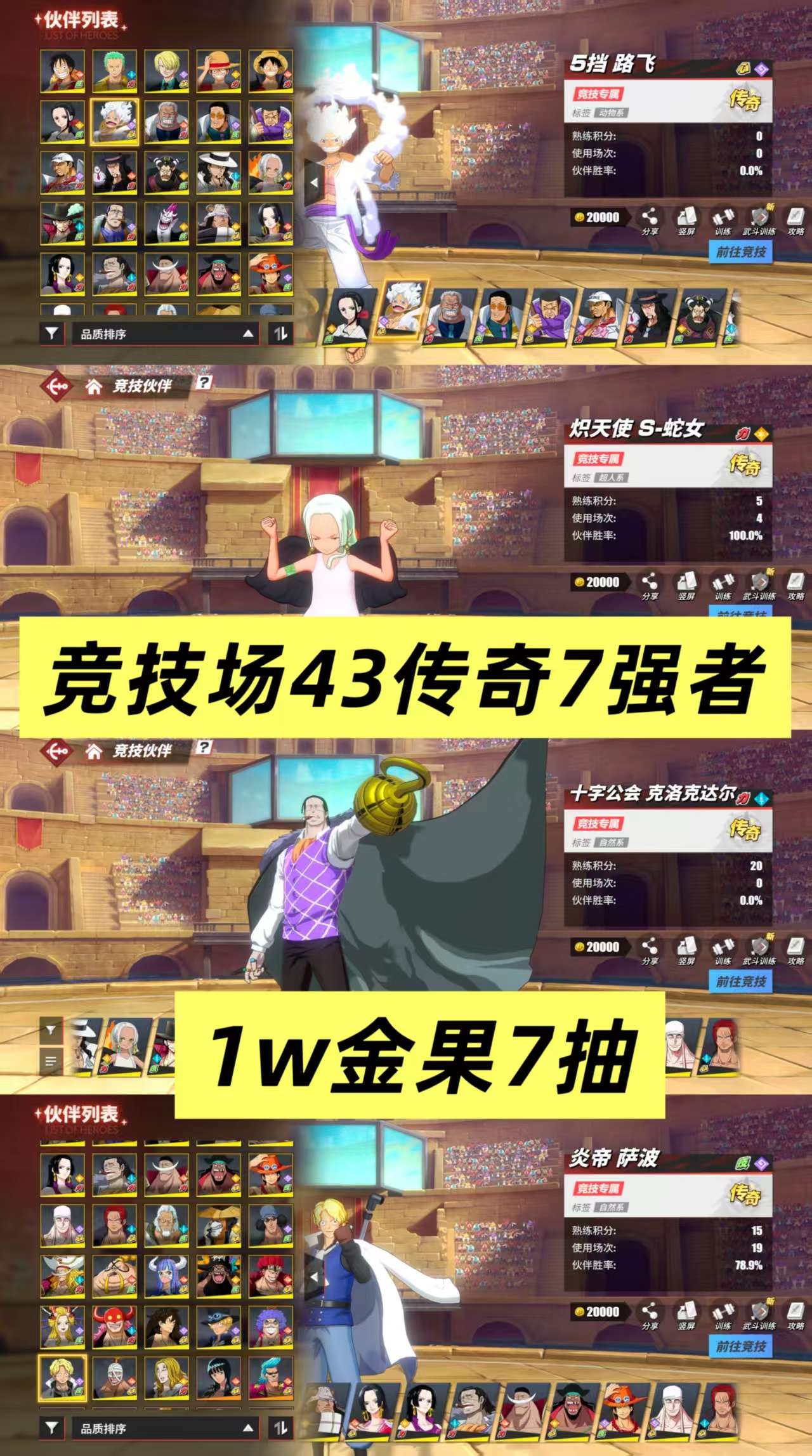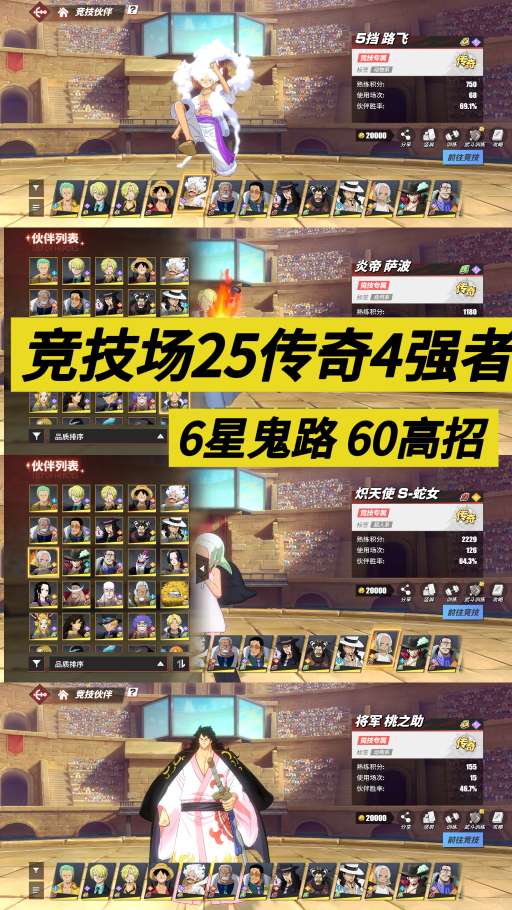 竞技场25传奇4强者,六星鬼路, 尼卡 桃之助 小女帝 白衣路奇 萨博新出热门都有