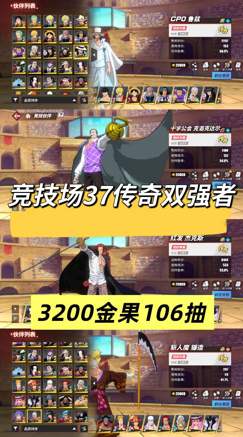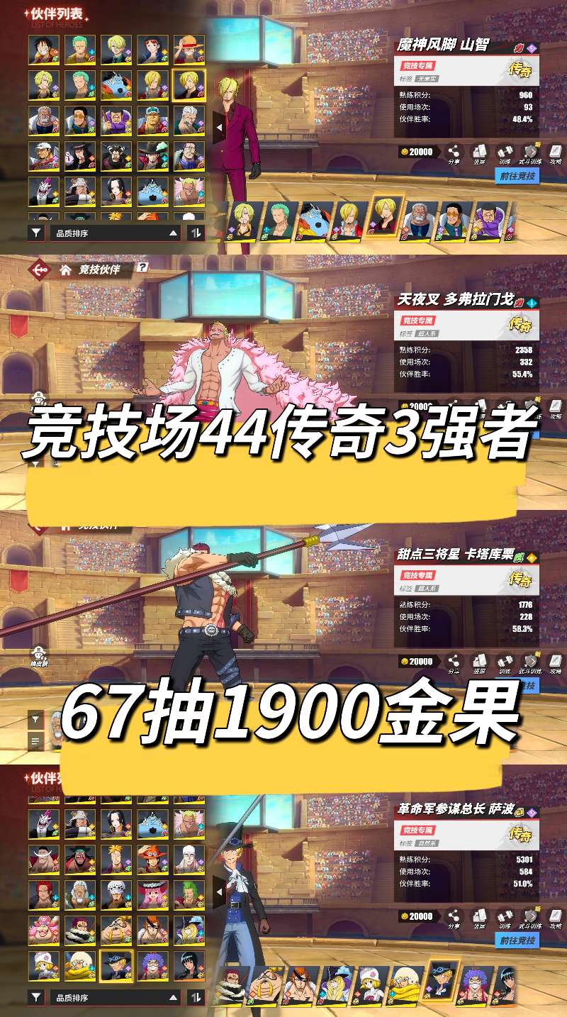 竞技场53传奇3强者,1800w,新鹰眼,明哥,和路,和罗宾,文山,红发,凯多等官方版本苹果安卓都可