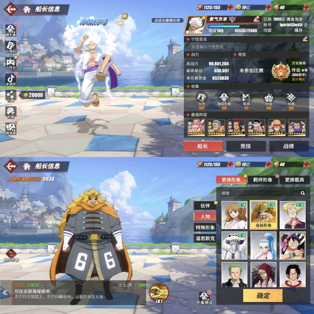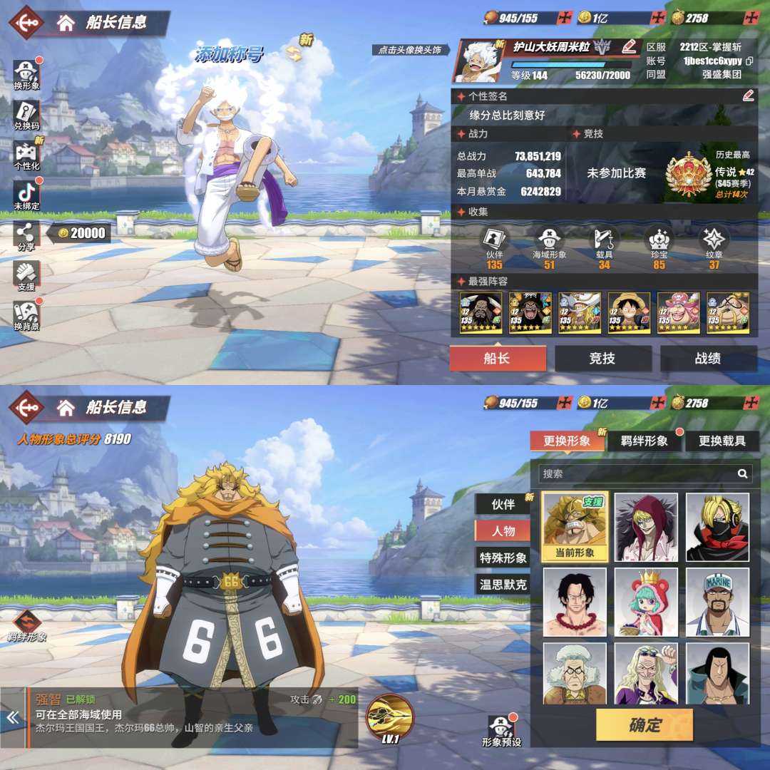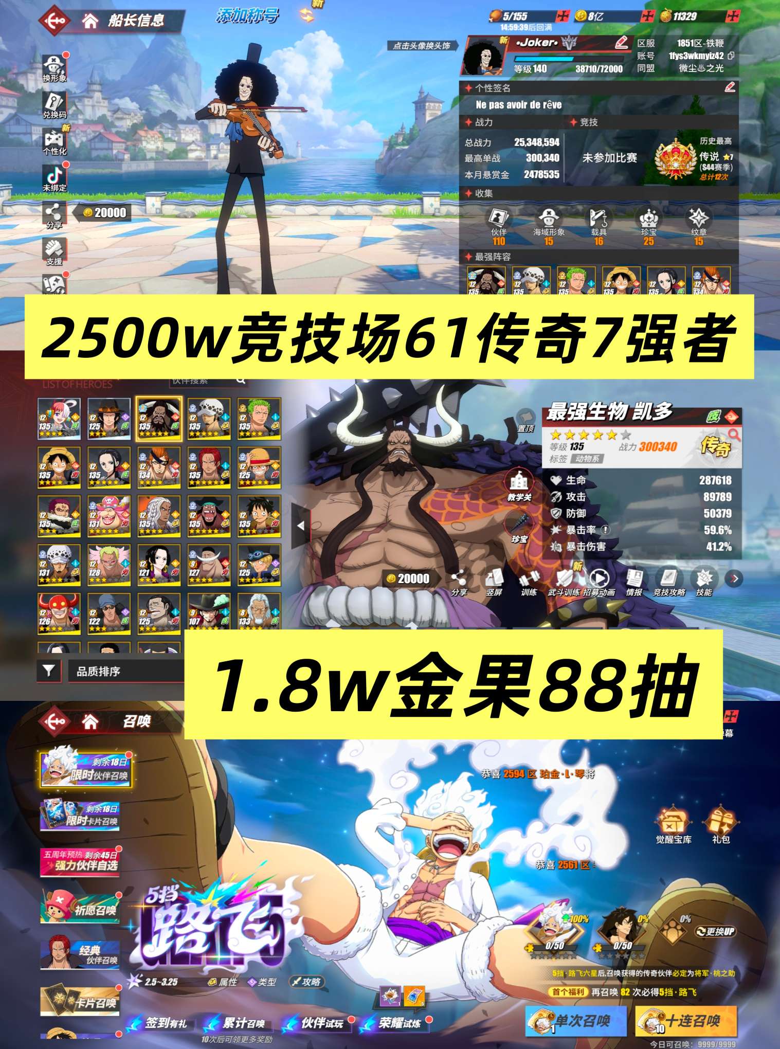 2000w战力 全区排名71 六星凯多 尼卡路飞 金狮子 岛船 1典藏 13强者 42传说