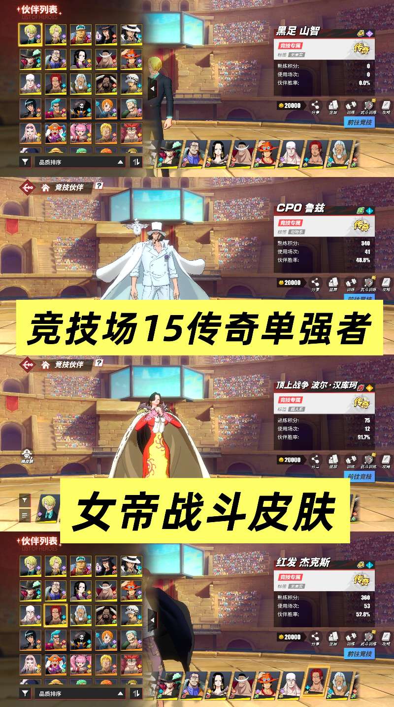竞技场15传奇单强者女帝战斗皮肤,白衣路奇,红发凯多,和罗等官服苹果安卓都可以,拍下秒换绑定,