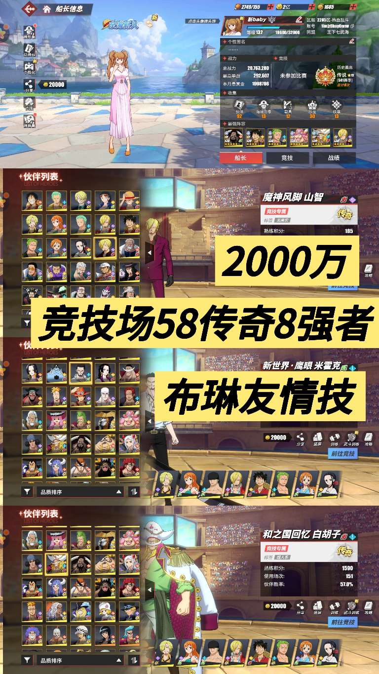 竞技场39传奇6强者卡二,新鹰眼,青年雷利,蛇人,四档,明哥等官服苹果安卓都可以玩,拍下秒换绑