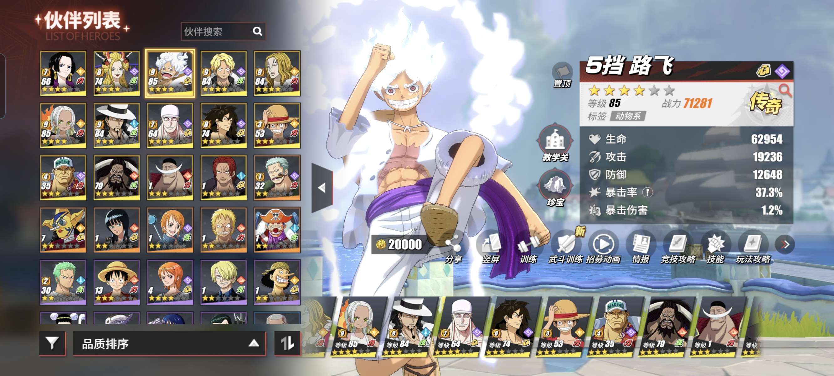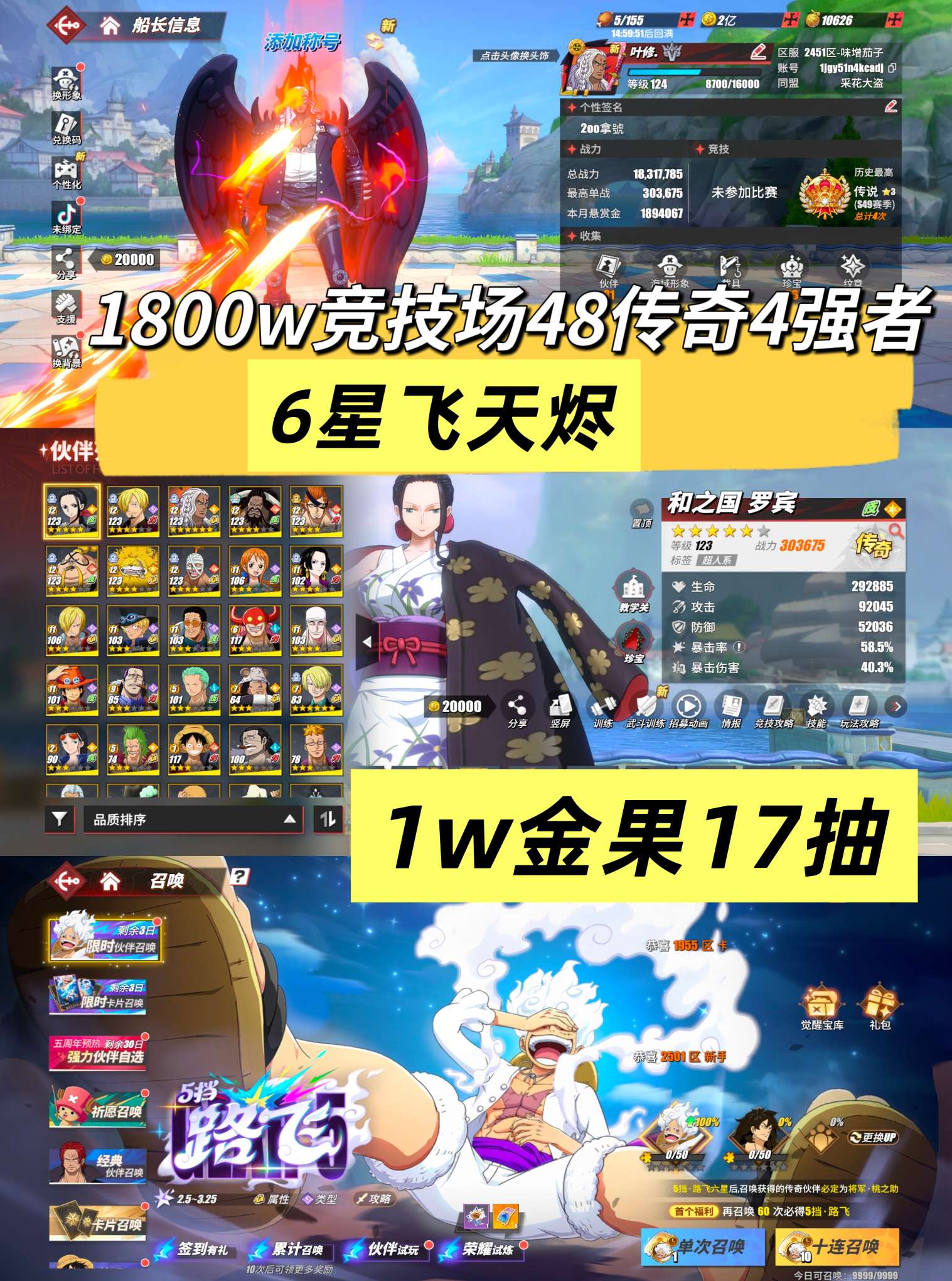 低价出,5档路飞差几抽,良心价格主pvp,pve6星文山,
