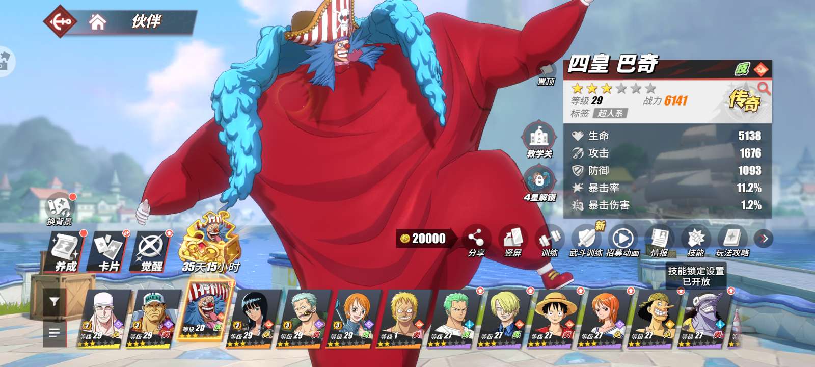 4421万战力。63传奇4强者。98友情技布林。6星:珍宝红发 珍宝白胡子 大妈 新罗宾 女帝无