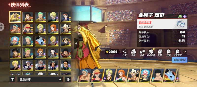 800w35传奇3强者魔神山治,青年雷利,和佐,和罗,裤赞藤虎等竞技场专属永久新世界鹰眼安卓华为版本