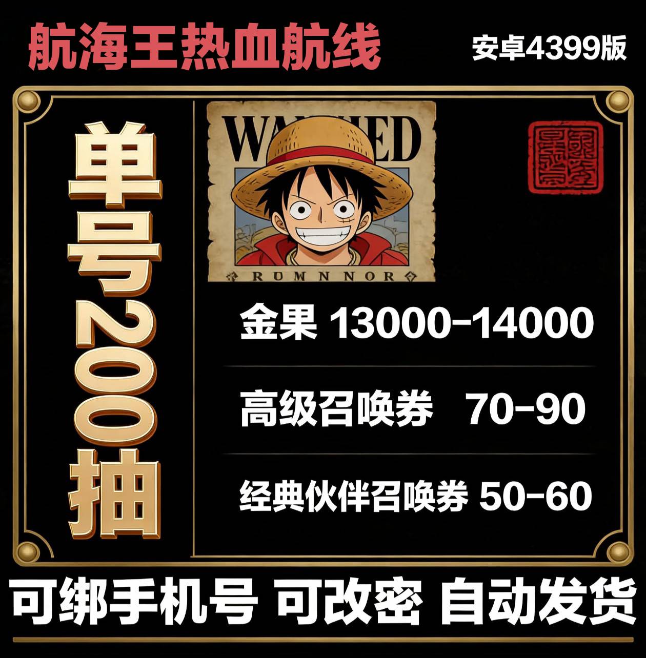 【200抽】=13000-14000金果➕50经典➕70高招➕必带艾尼路