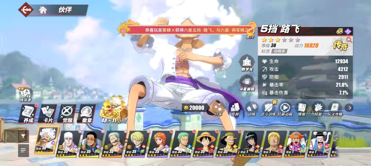 新号首区五档路飞蛇女,进度跟得上