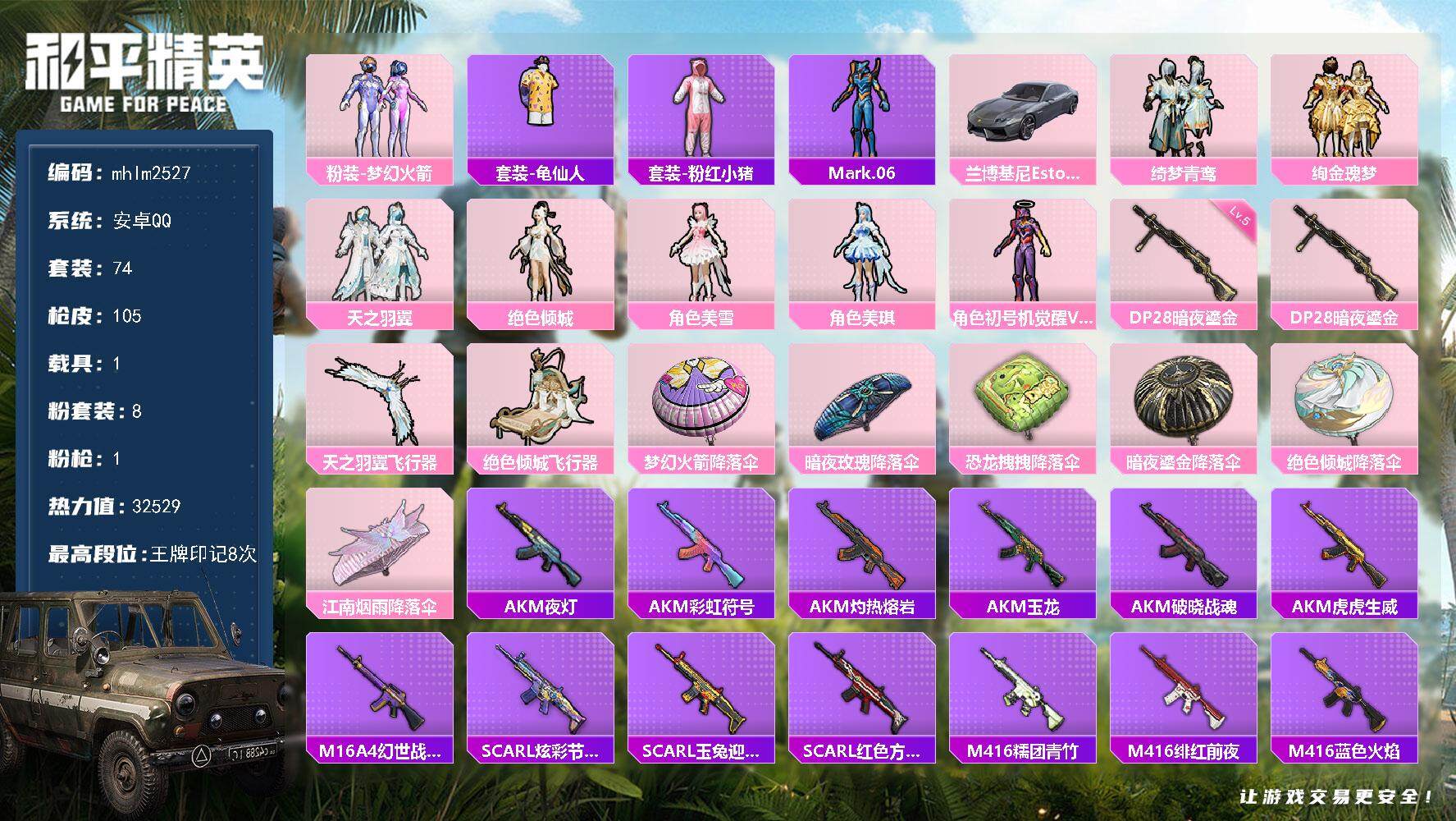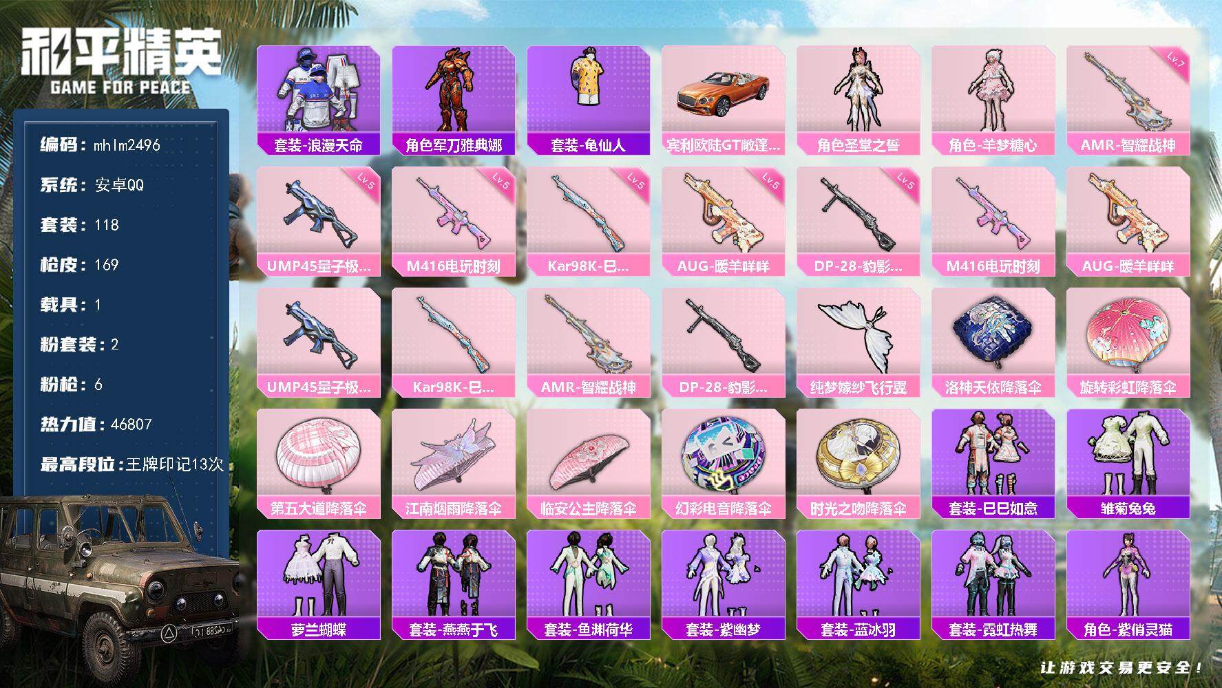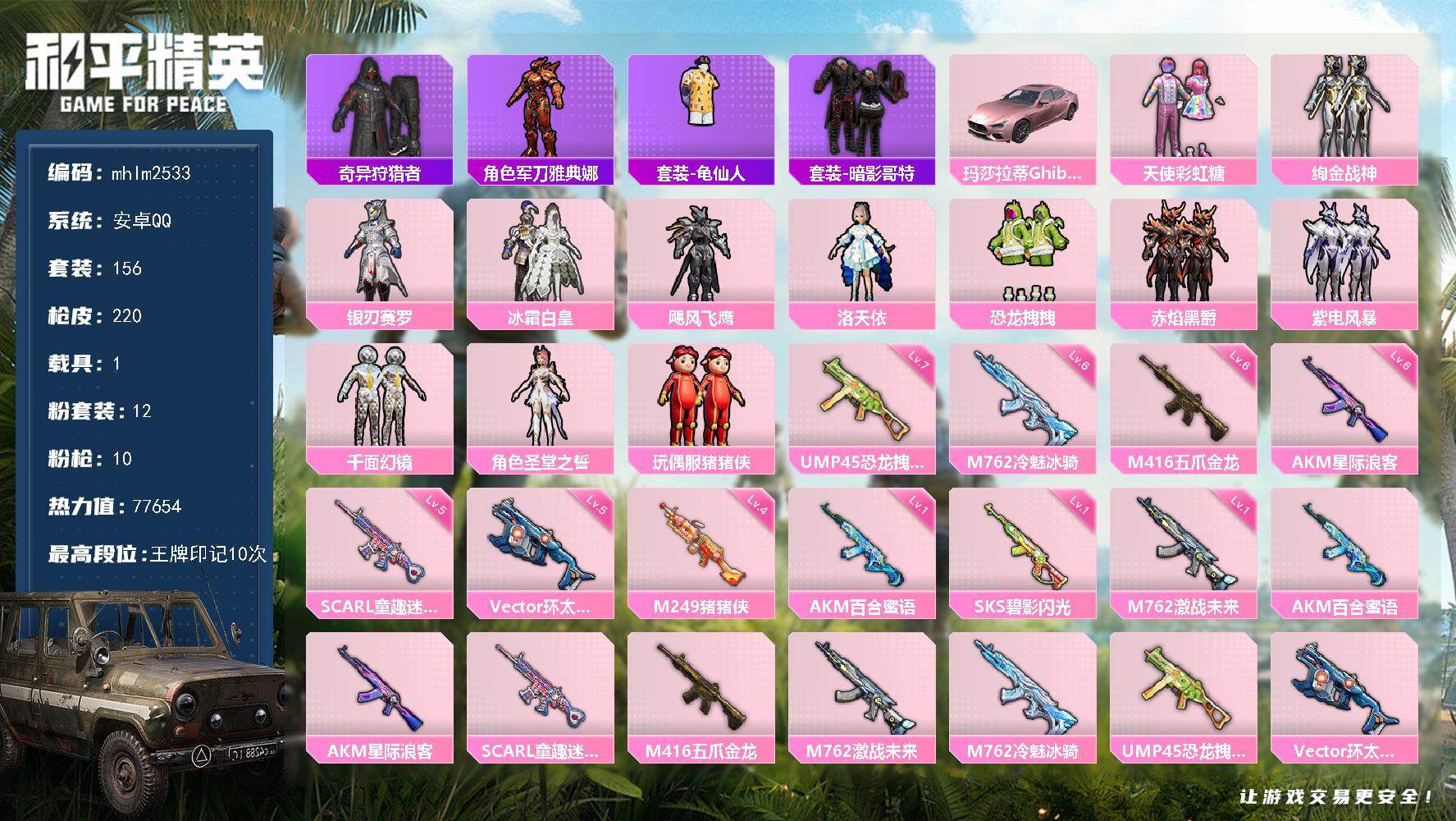 【mhlm2499】安卓 手Q-2粉装-11特效枪-0载具-0粉色飞行器-54