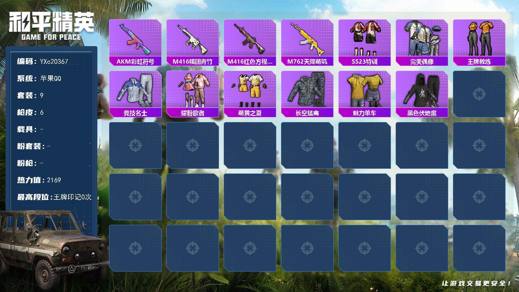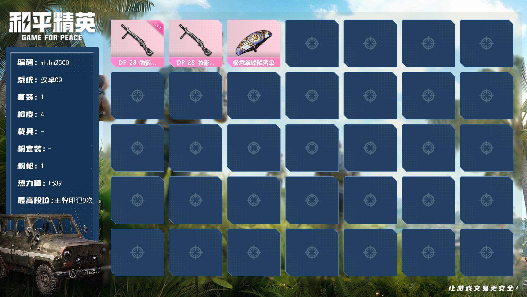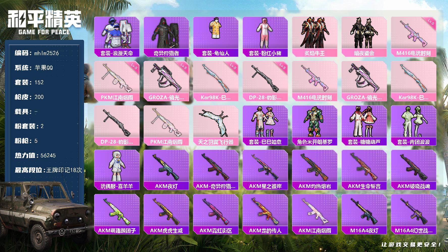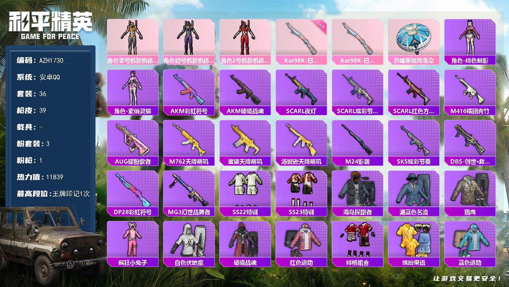 DD409(送暗区)【极品皇冠20年老号Q70级1特效枪】可二次 安Q吃鸡-74套装 64枪皮(可二次)18350热力值 4印记 历史超级王牌4星【1特效枪】Kar98K-巳巳如意(4级)【5热门】雪山精英 呆萌铁蟹 破蛋小黄鸡 极速红龙 暗夜傀儡 龟仙人 缤纷果语 炫蓝之夏 萌趣颜团子 SS12特训 海上生明月 时尚圣诞 M167A4-快乐主宰 M24-