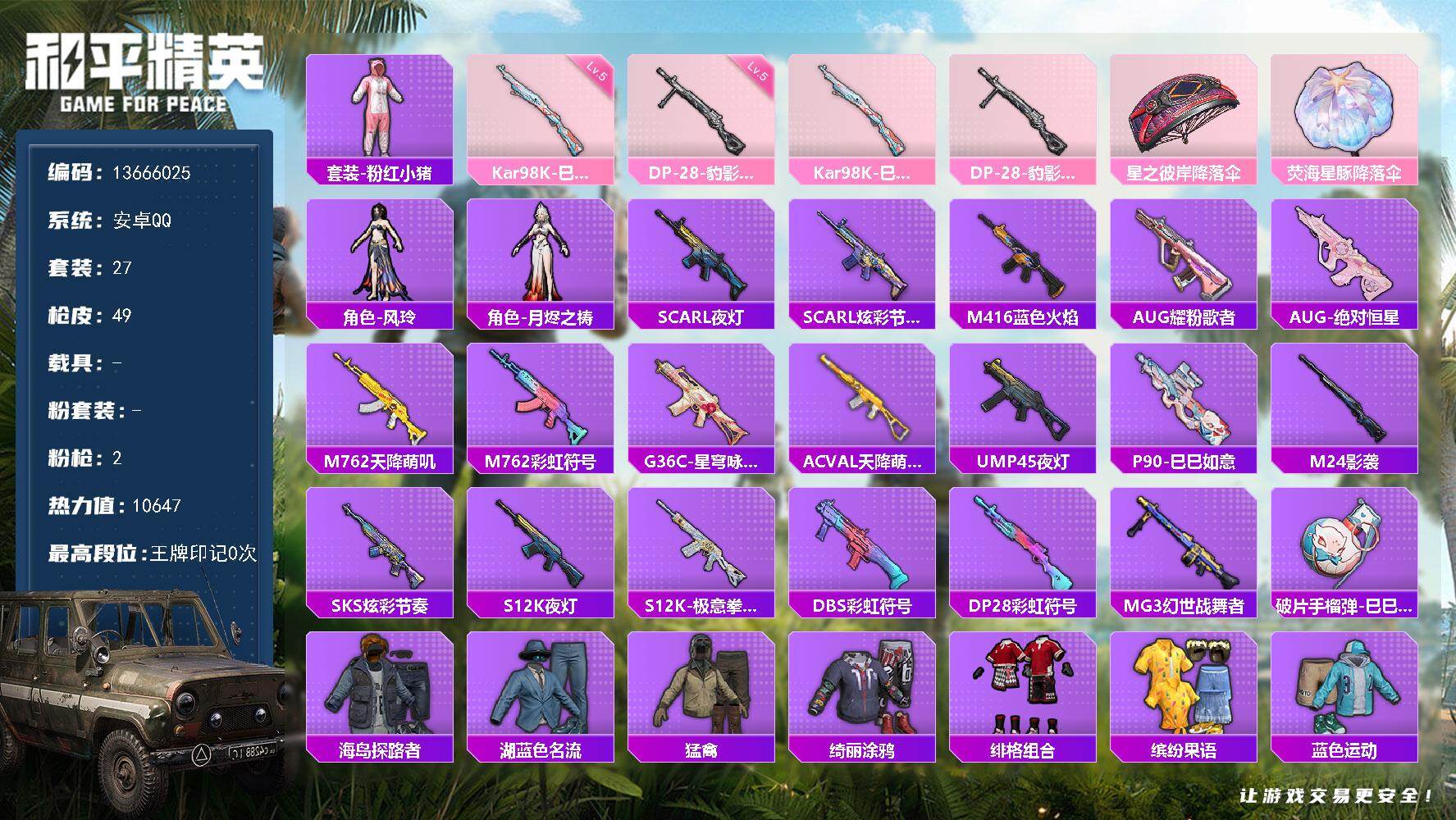 27套装/枪械2/装备38/战备24/热力值10647/五级Kar98K-巳巳
