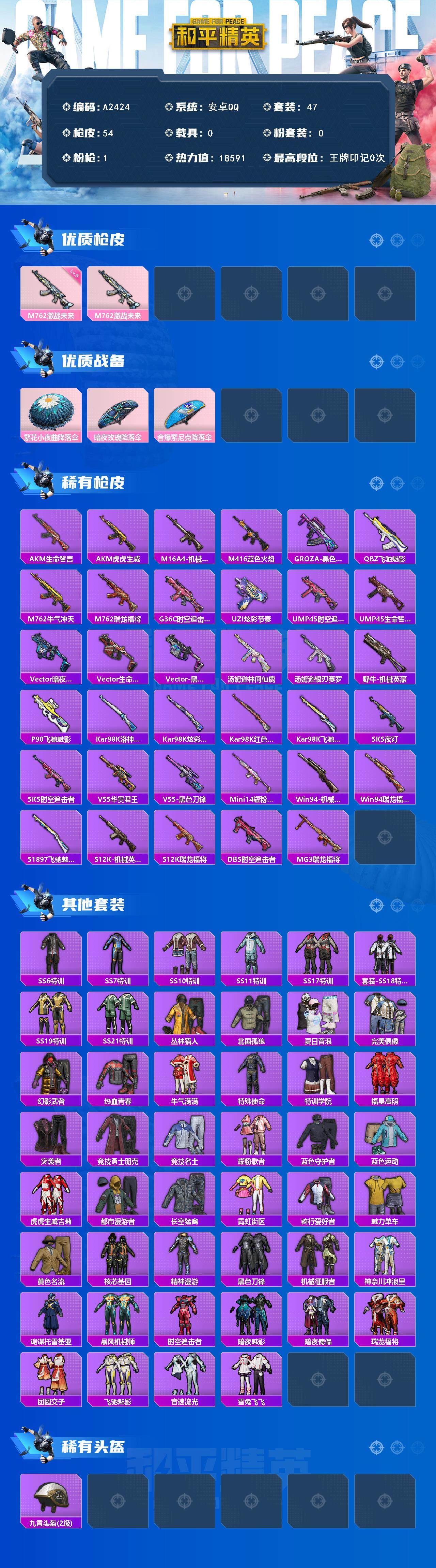 0粉装-1特效枪-0载具-0粉色飞行器-18591热力值-1王牌印记-47套装-54枪皮