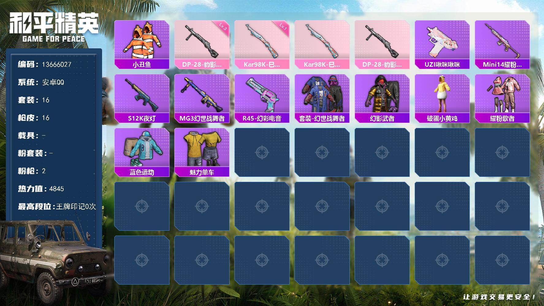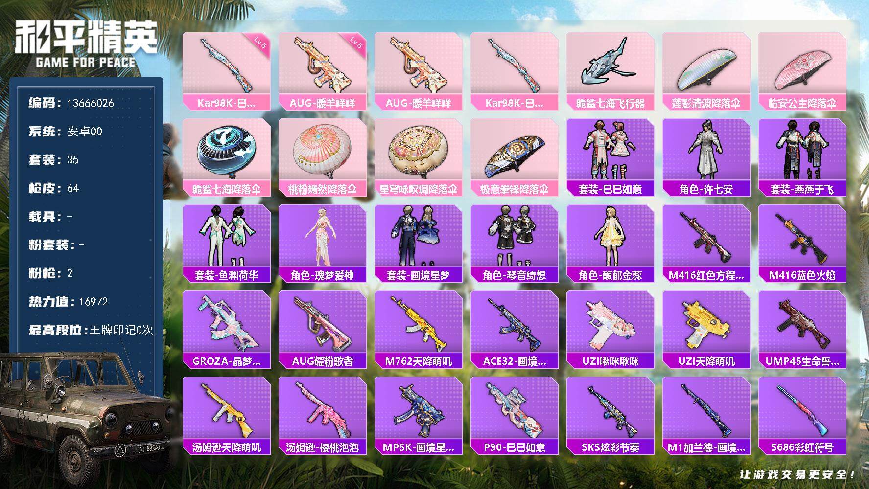 6粉装-9特效枪-0载具-0粉色飞行器-51515热力值-6王牌印记-125套装-173枪皮