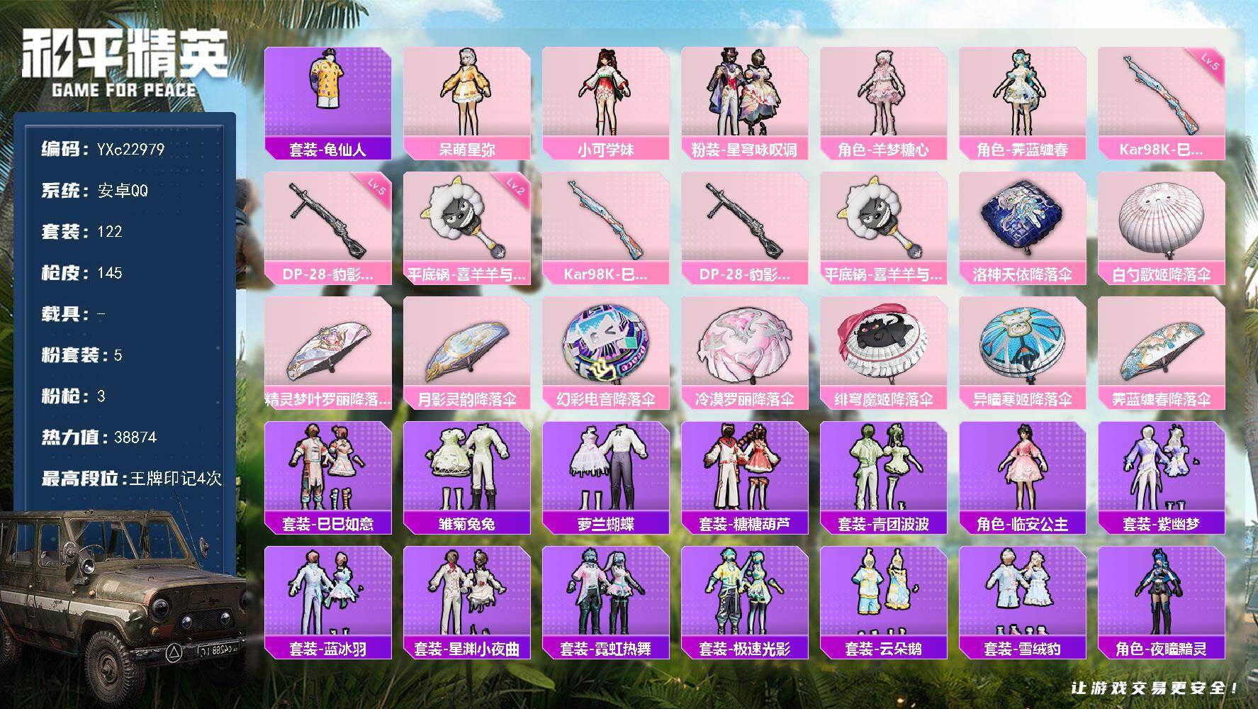 4粉装-5特效枪-1载具-2粉色飞行器-21838热力值-1王牌印记-36套装-51枪皮