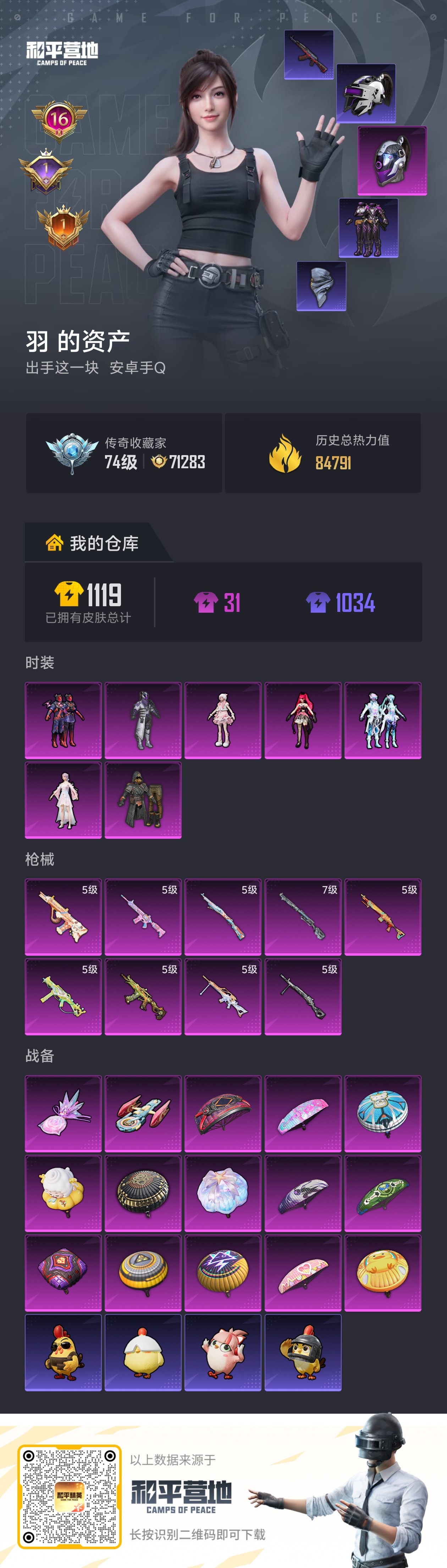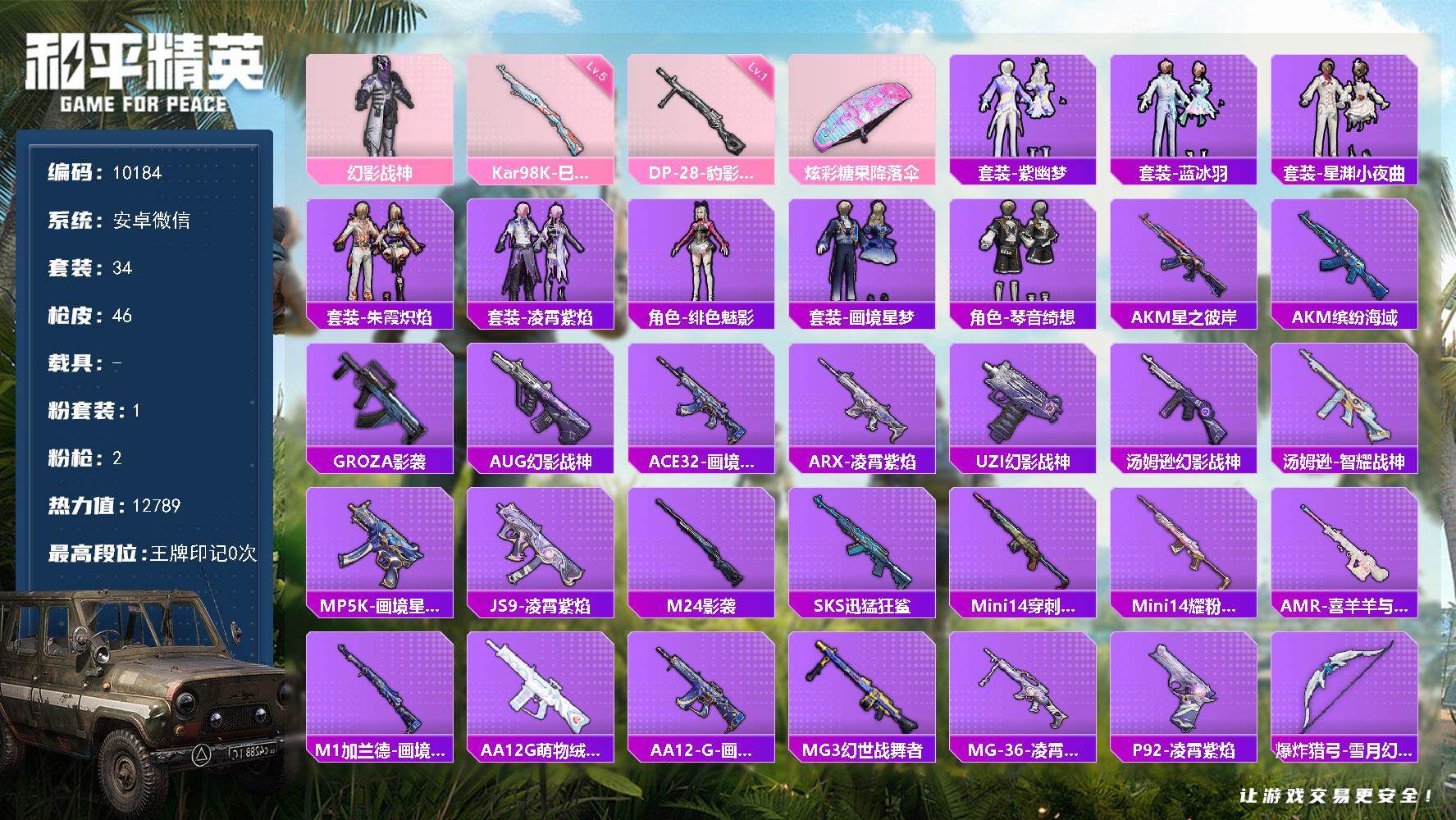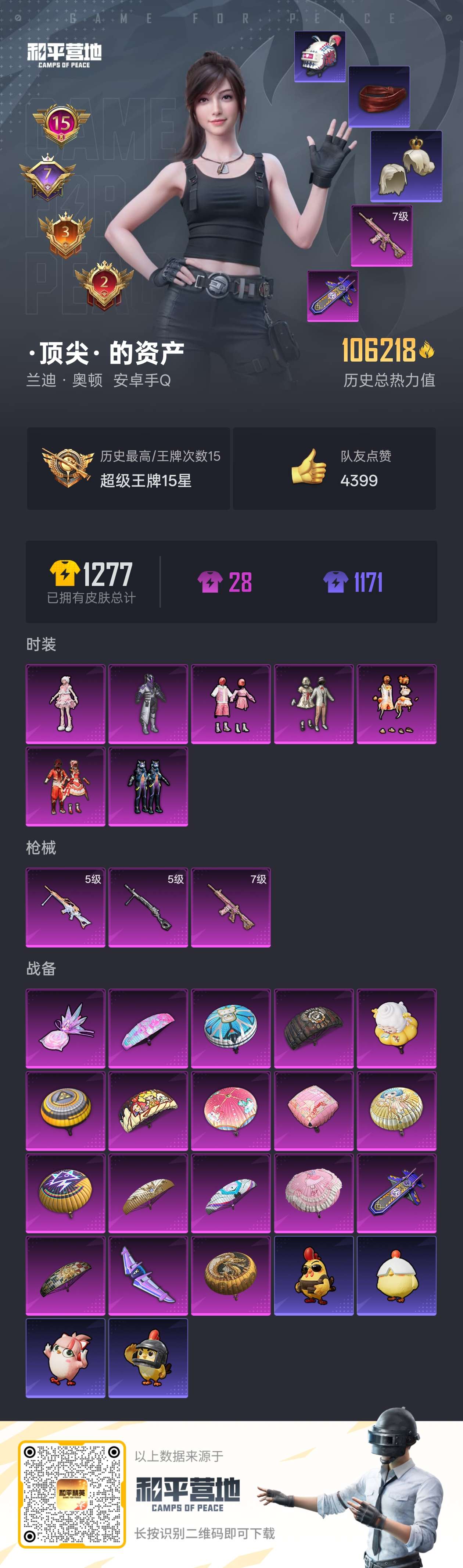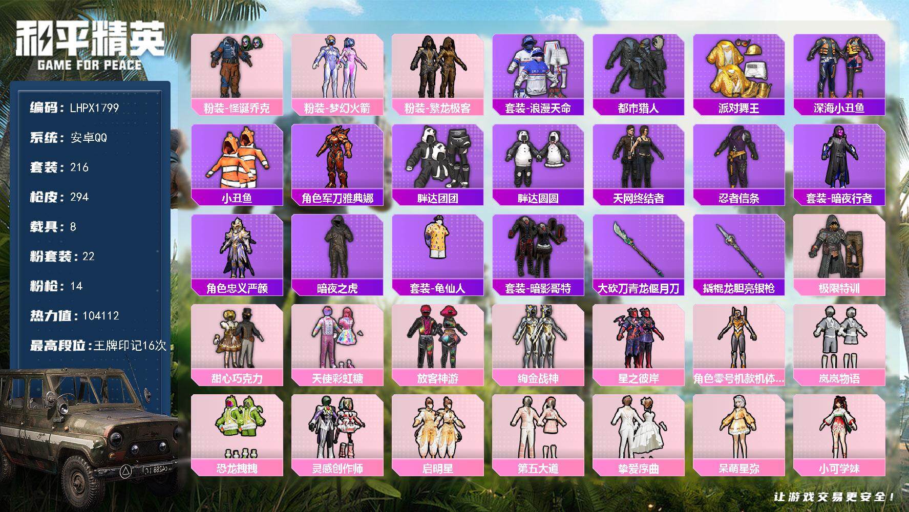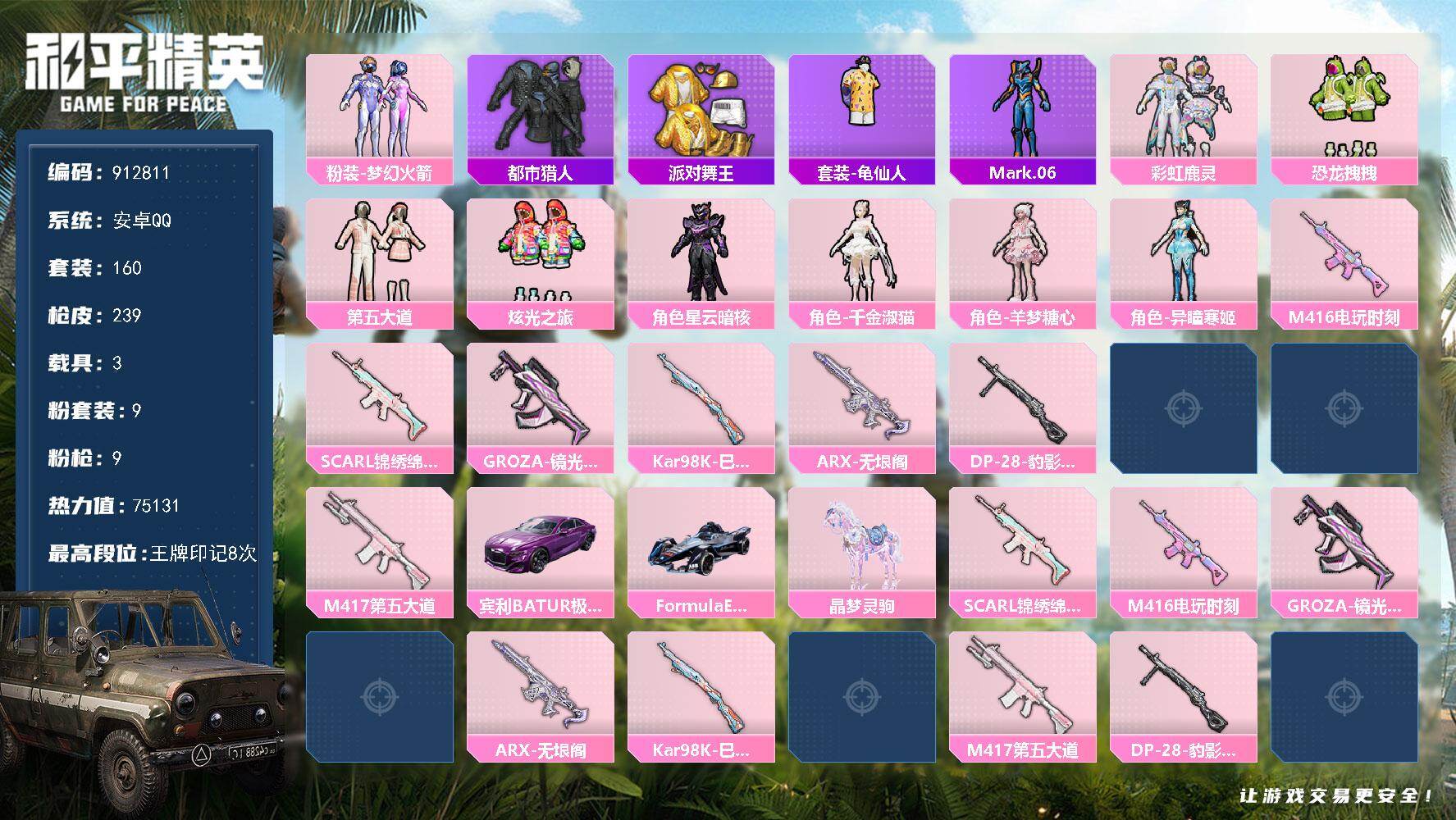 安卓 手Q-3粉装-6特效枪-1载具-2粉色飞行器-56064热力值-13王牌