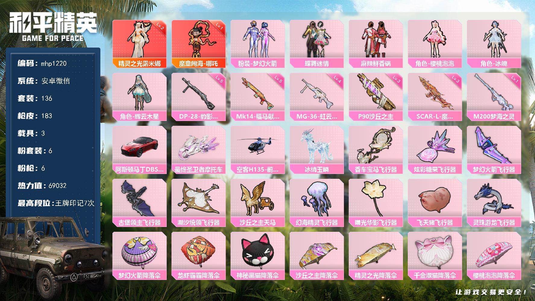 【mhp1220】安卓 微信-2神装-6粉装-6特效枪-3载具-11粉色飞行器