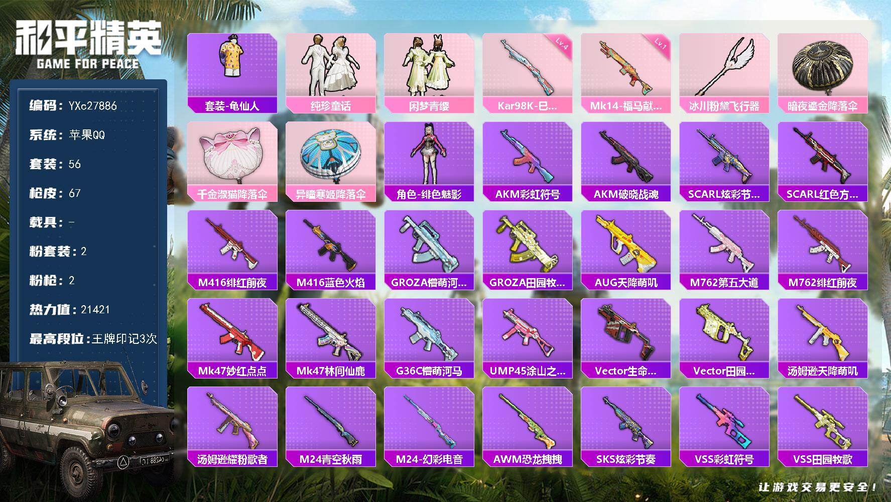 YXc27886-【可二次】【因赛季更新游戏段付以上号为准!】 苹果Q-2粉