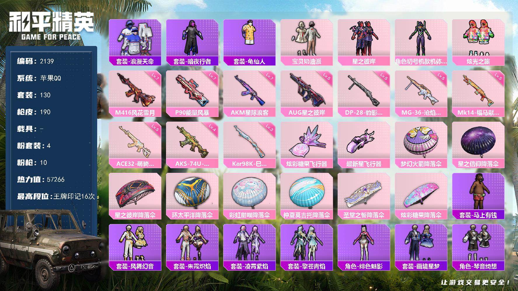 苹果 手Q-4粉装-10特效枪-0载具-2粉色飞行器-57266热力值-16王