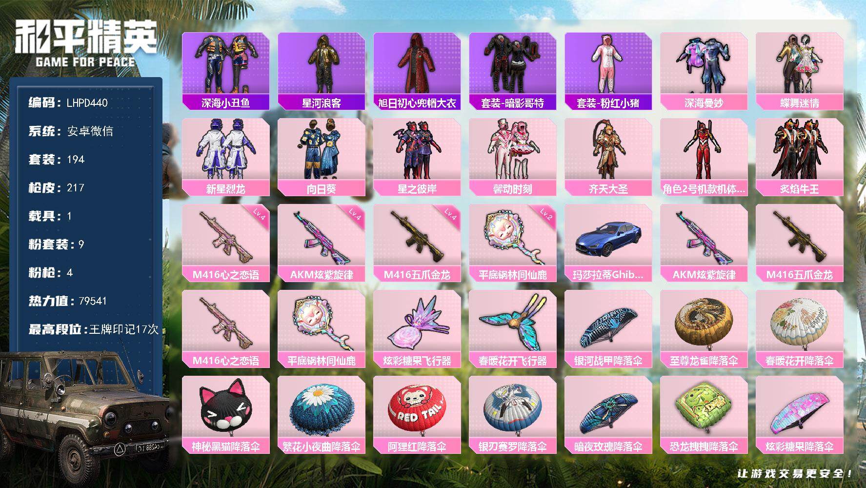 【店主推荐捡漏号!可直接换绑】安卓 微信-1神装-4粉装-8特效枪-8载具-8