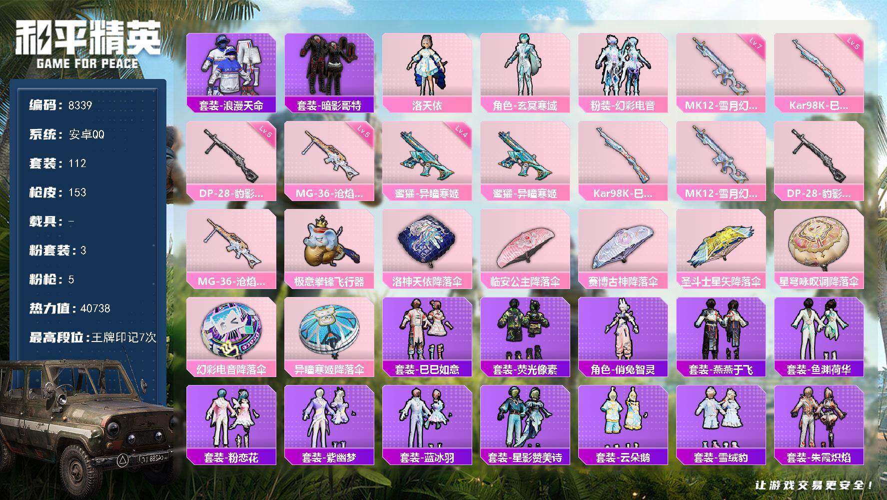 hs62044 安卓手Q-8王牌印记-7粉装-7特效枪-1载具-77672热力值-181套装-249