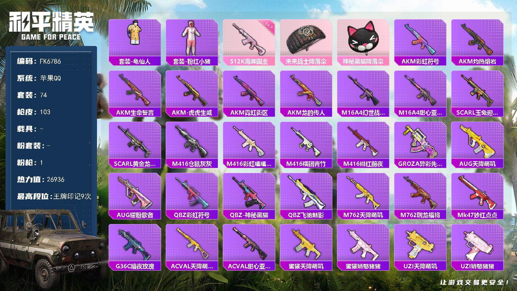 【FK6786】74套装/枪械1/装备85/战备82/王牌印记9/热力值269