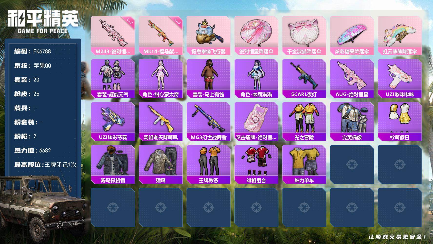【FK6788】20套装/枪械2/装备35/战备26/王牌印记1/热力值668
