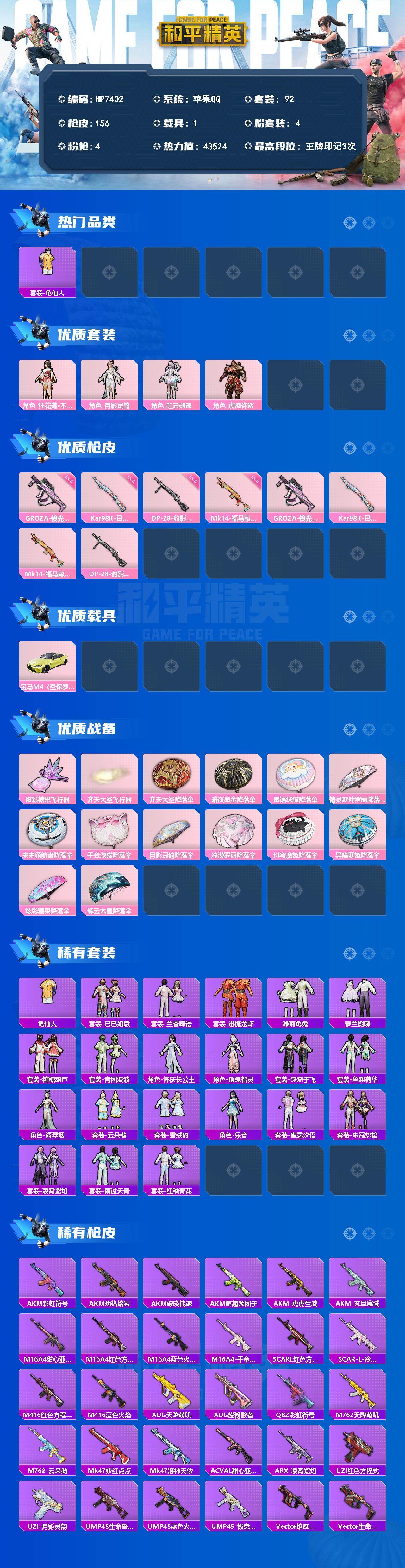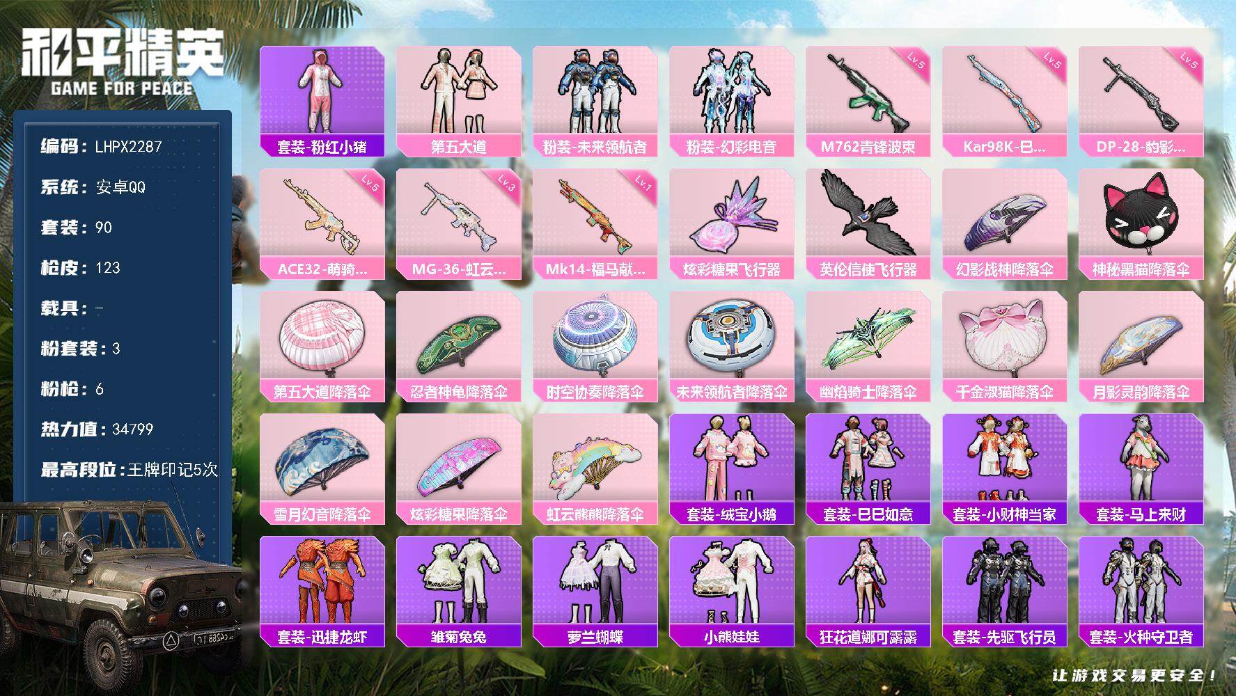 安卓 手Q-1粉装-6特效枪-0载具-0粉色飞行器-20404热力值-3王牌印