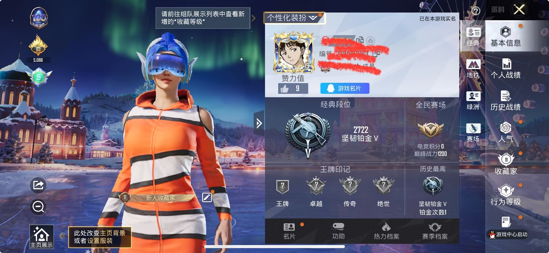 112套装/枪械4/装备154/战备81/王牌印记11/热力值36109/五级