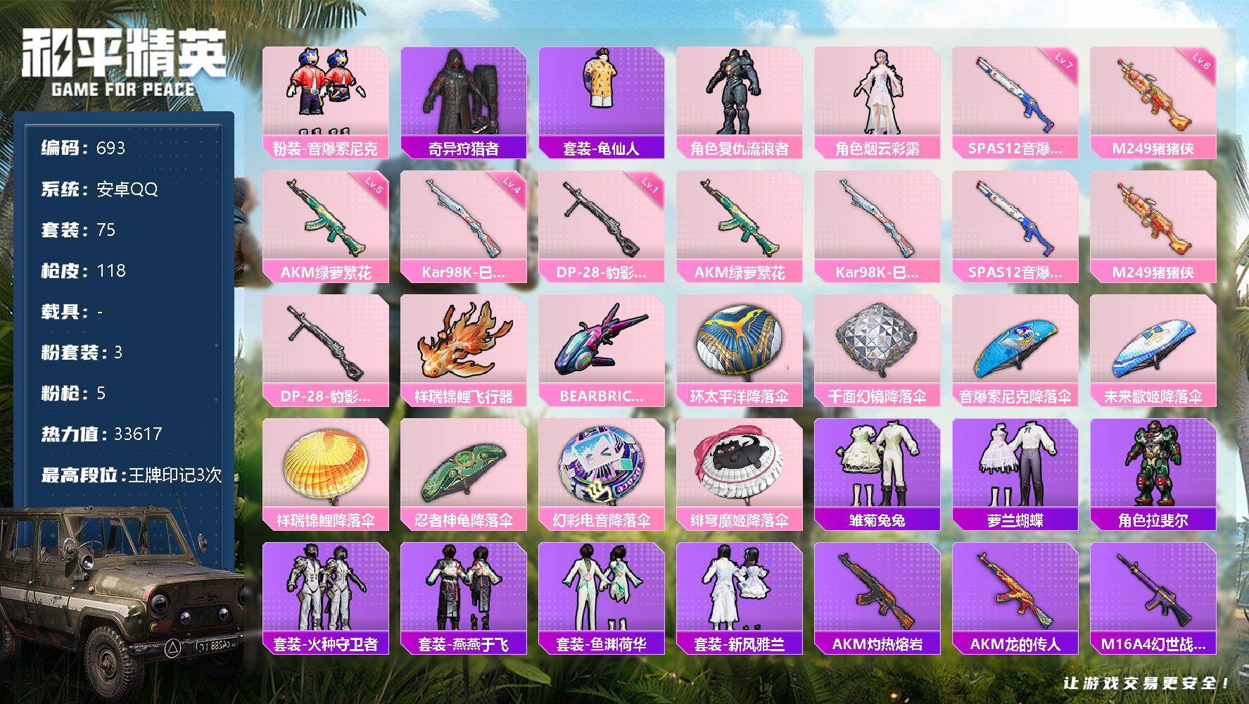 【商品标题】:安卓 手Q-4粉装-3特效枪-0载具-28650热力值-5印记-